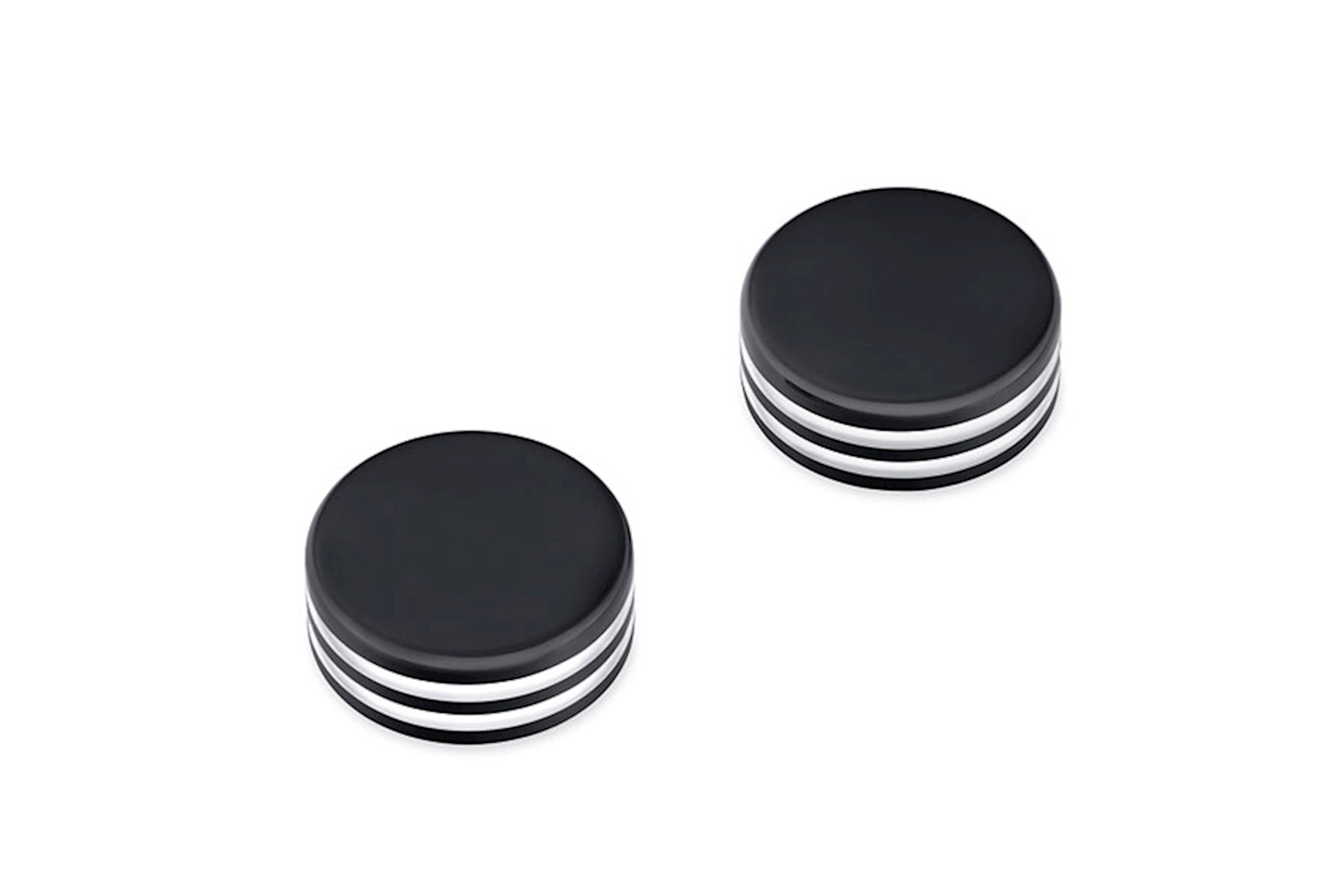 Top it off with style. These easy to install Fork Stem Covers complement the Defiance Collection to the top of the triple tree for a cohesive look. The deep radial grooves define the style, and the choice of chrome, black or machine cut finishes complement your bike’s polished, chrome or blacked-out front end components. Sold in pairs.
