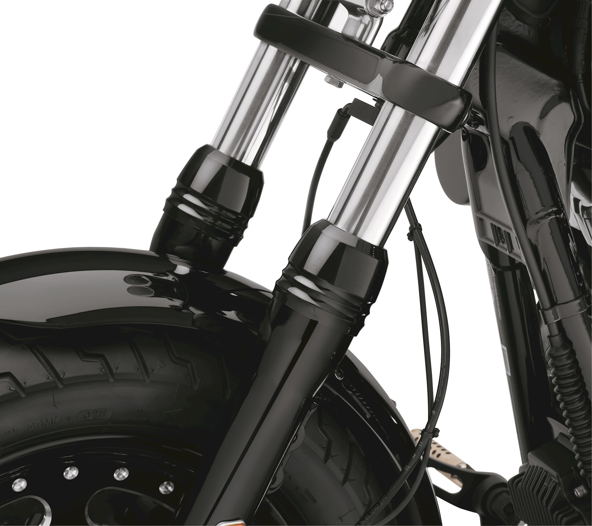 Oversized billet covers are designed to replace the Original Equipment dust caps, creating a big, beefy look to the front forks. Available in your choice of mirror chrome or gloss black finish, these covers are the perfect addition to matching accessory fork sliders and upper fork nut covers. Fits '06-later Dyna® models (except FLD and FXDSE/2). Does not fit with Screamin' Eagle® Chrome Fork Brace P/N 46634-06 or 46595-06A and Turn Signal Relocation Kit P/N 69433-08A.