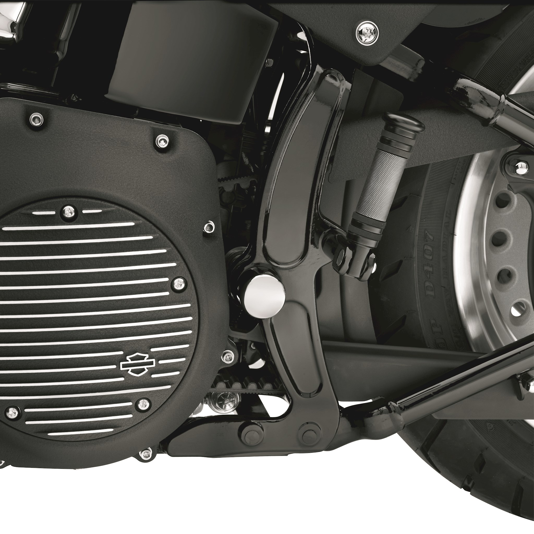 Cover your swingarm pivot bolt with distinctive styling. Available in your choice of mirror chrome or gloss black finish, this kit includes set screws and Allen® wrench for easy installation (sold in pairs). Fits '08-later Softail® models (except FXCW, FXCWC, FXSB, FXSBSE and FXST-Aus).