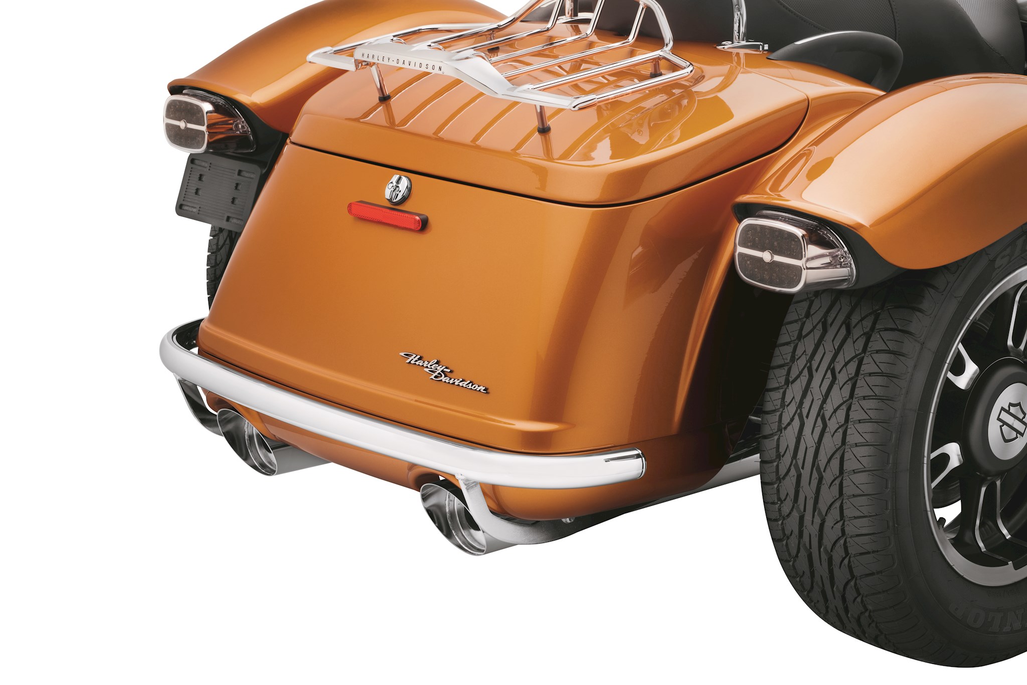 Unique rear guard wraps around the bodywork to protect your finish from damage. Lightweight steel tubing incorporates high-quality welded joints and is hand-polished and chrome-plated for a brilliant finish. Kit includes all necessary mounting hardware for bolt-on installation.