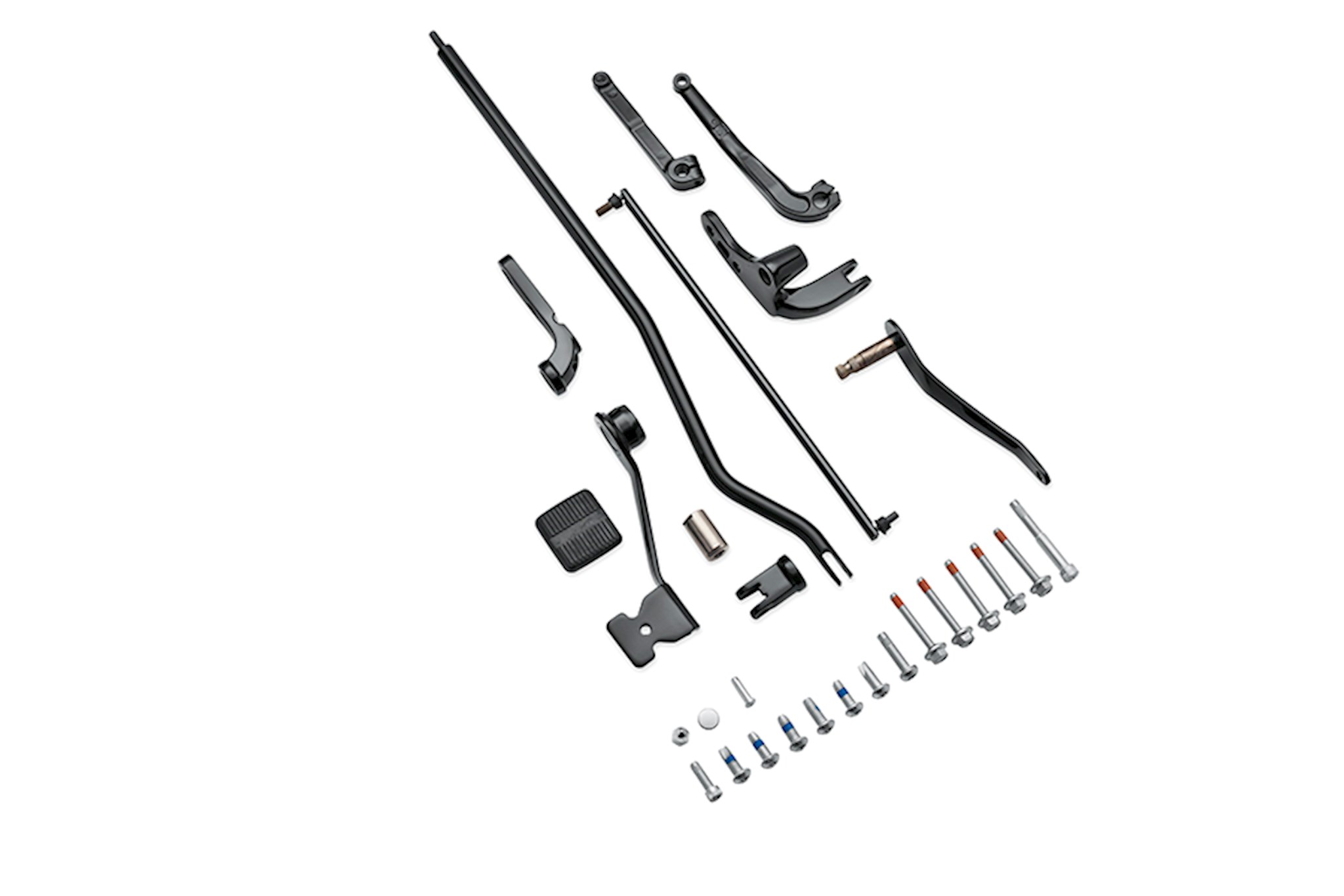 Stretch out for maximum comfort and style. This complete kit includes all components necessary to convert a mid-control equipped Dyna® model to forward controls. Moves controls 11.0" forward from mid-control foot position. Kit is available in chrome or gloss black to match your customizing style. Fits '06-later Dyna models with mid-controls. FLD models require separate purchase of footpegs.