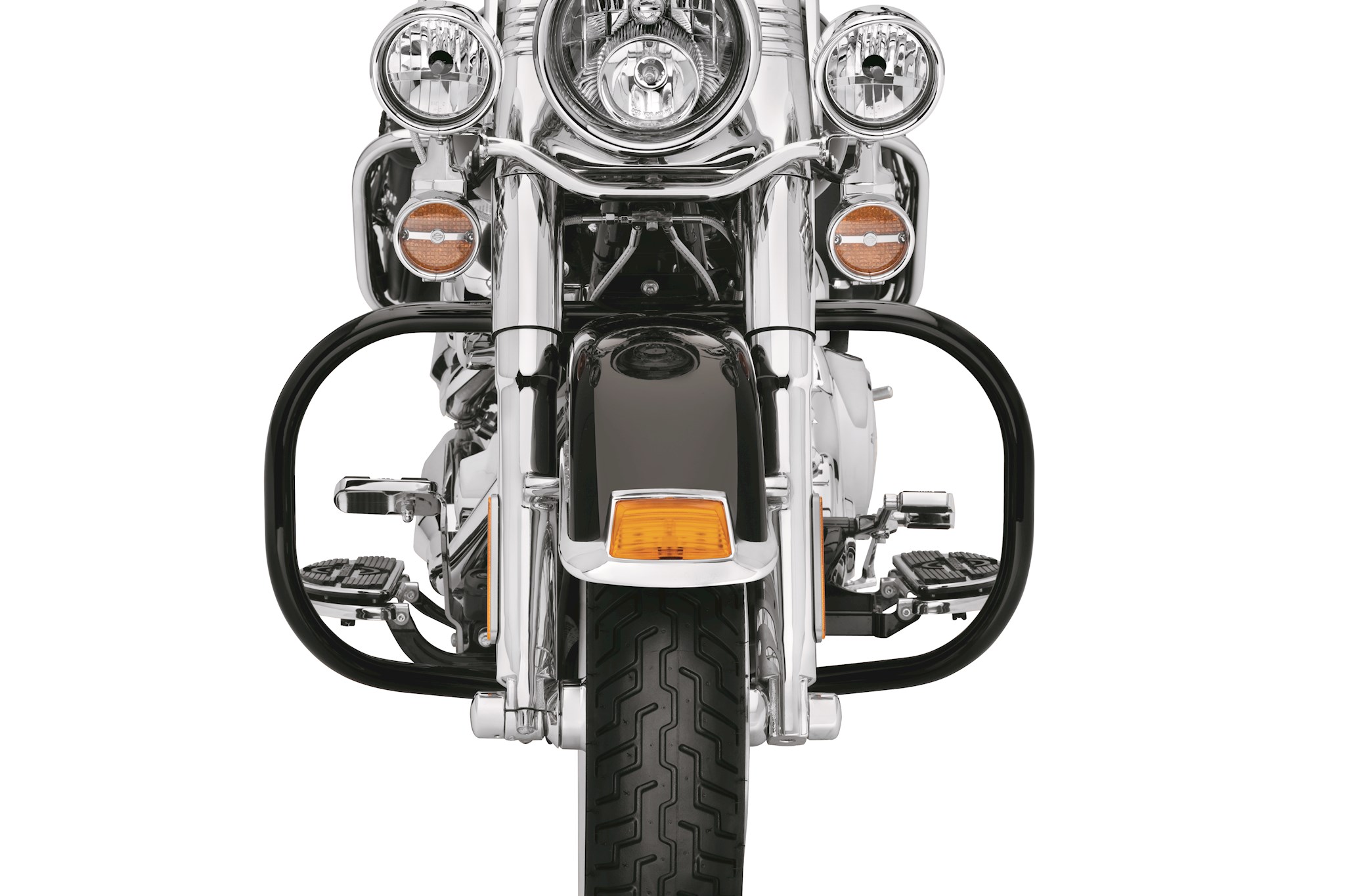 A serious finish for serious riders. Before a black powder coat, these engine guards get an extra layer of protection from an E-Coat dip. So go on and install Engine Guard Mount Footpegs because this finish will go the distance.