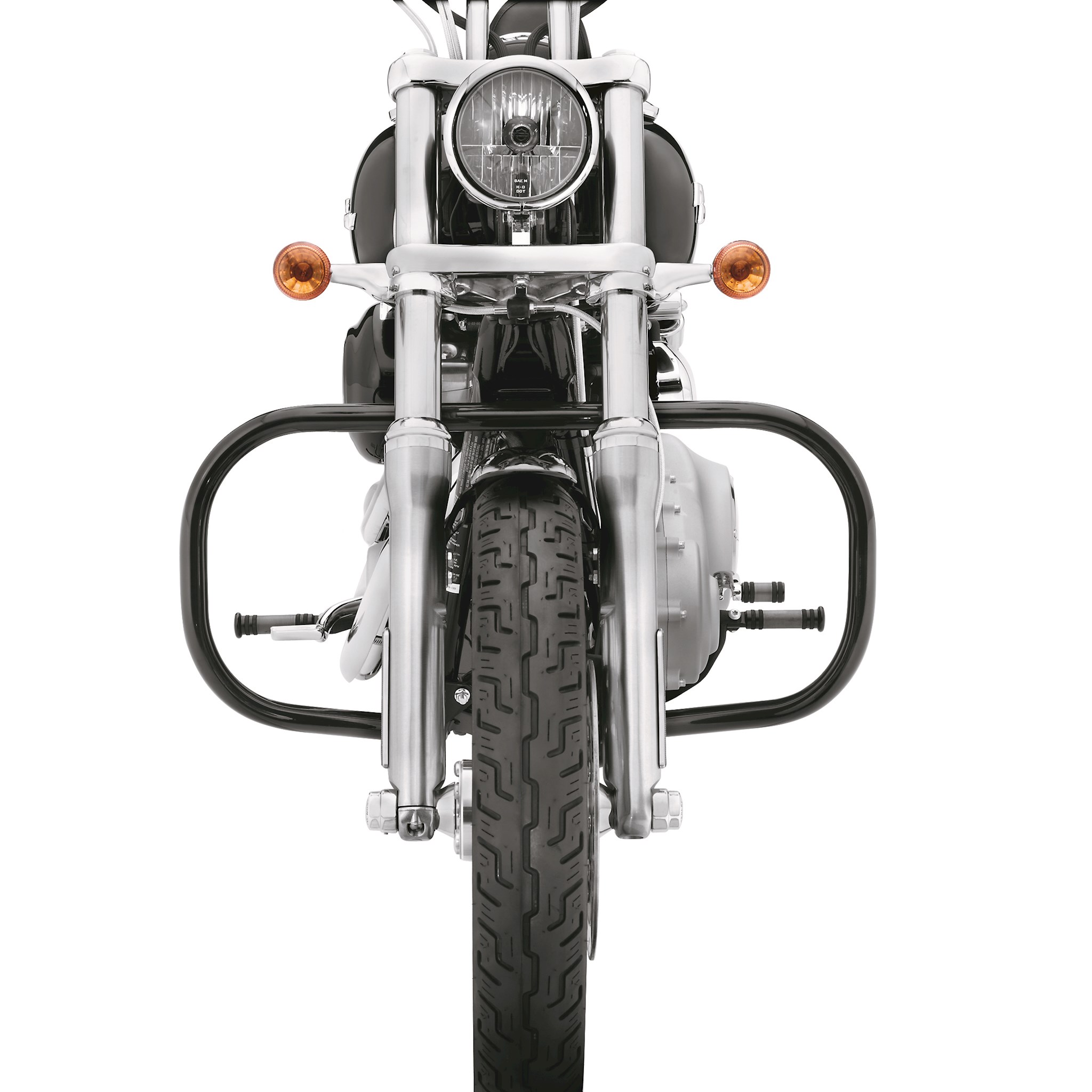 Protect your bike without sacrificing ground clearance or style. The one-piece Engine Guard is designed to complement the lines of the motorcycle and the available chrome or gloss black finish adds the perfect finishing touch. For use with the mid or forward controls. Fits '06-later Dyna® models. '14-later FXDL and all '15-later Dyna models in India require separate purchase of Horn Relocation Bracket P/N 69000058. Fits with Oil Cooler Kit P/N 26151-07. FXDSE/2 and FXDFSE/2 requires removal of front chin spoiler and separate purchase of Regulator Caddy P/N 70464-08A. '06-'11 models equipped with evap canister also require separate purchase of Canister Bracket P/N 47207-06. '12-later models equipped with evap canister require separate purchase of Canister Relocation Kit P/N 60800005.