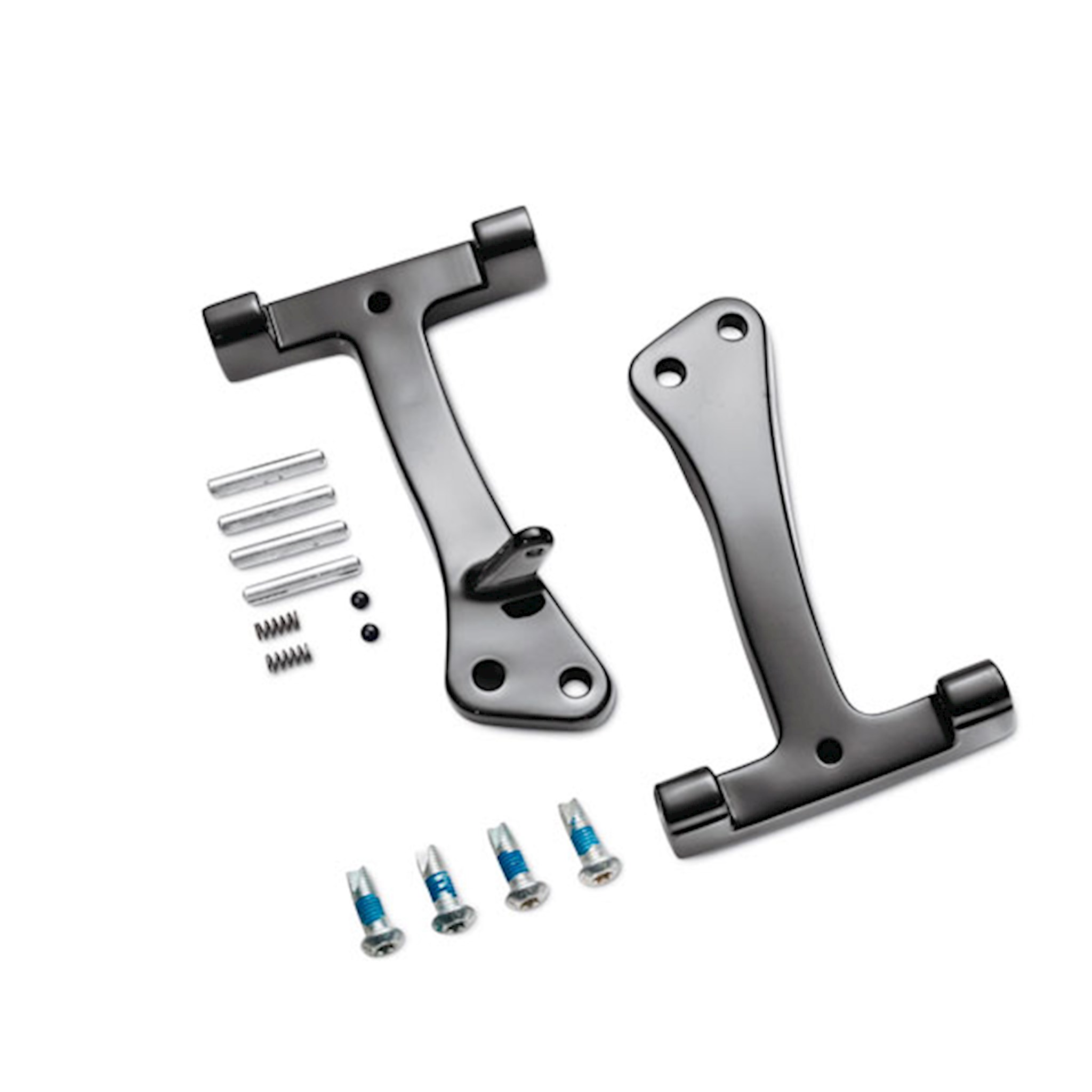 Add the comfort and convenience of passenger footboards to your Dyna motorcycle. This Support Kit is designed to allow installation of Traditional D-Shaped, Swept Wing, Tapered or Old-Style Passenger Footboards (sold separately) on Dyna models. Kit includes left and right supports, footboard mount hinge pins and installation hardware. Fits '06-later Dyna models.
