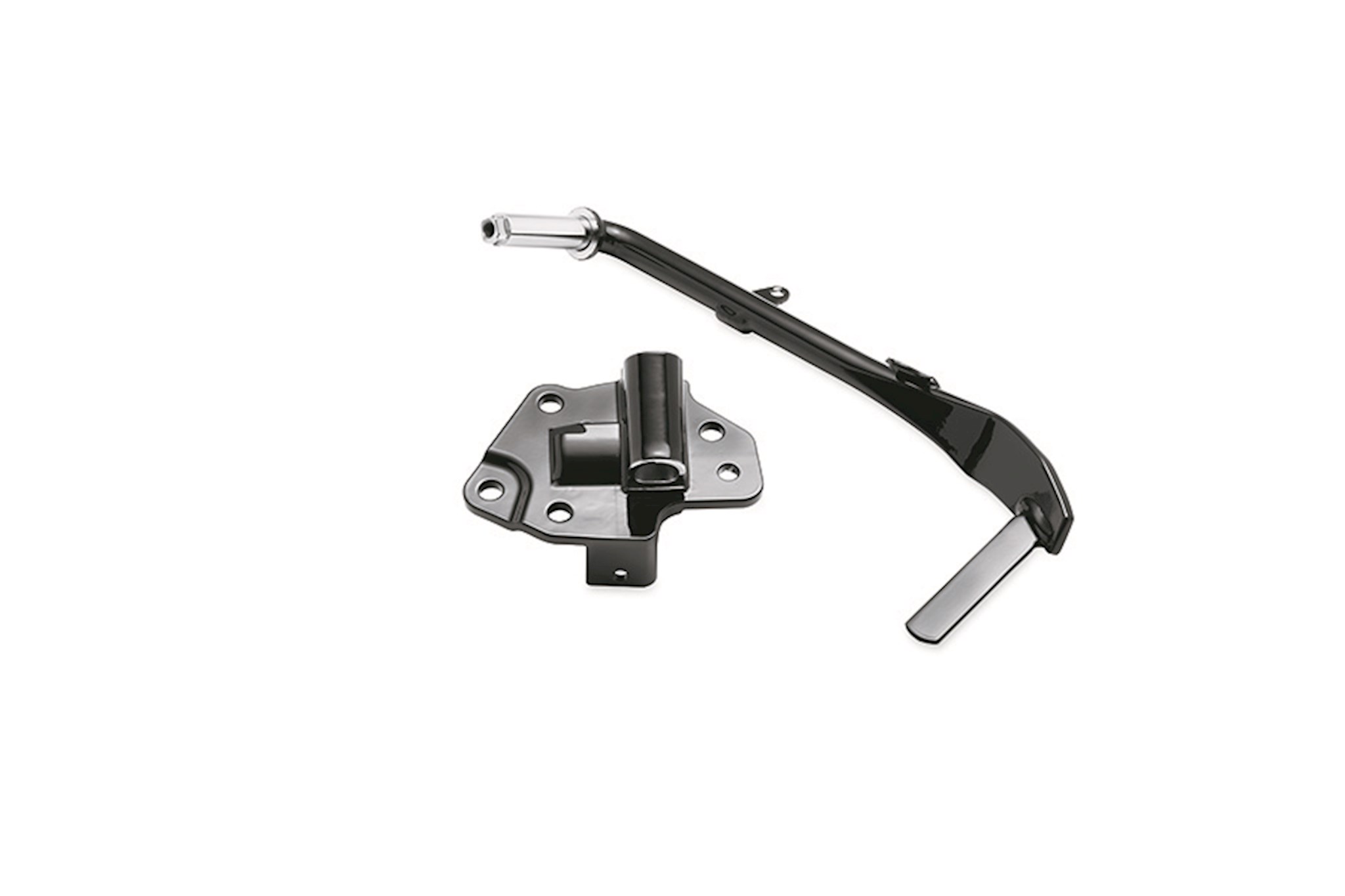 With this beautiful gloss black jiffy stand kit, your Dark Custom Touring model won’t just stand on its own – it will stand out. Using the Original Equipment jiffy stand and mount to ensure quality and fitment, these pieces are finished in rich gloss black to blend into the frame and help disguise this very visual component on the vehicle. Installation reuses Original Equipment spring and hardware.