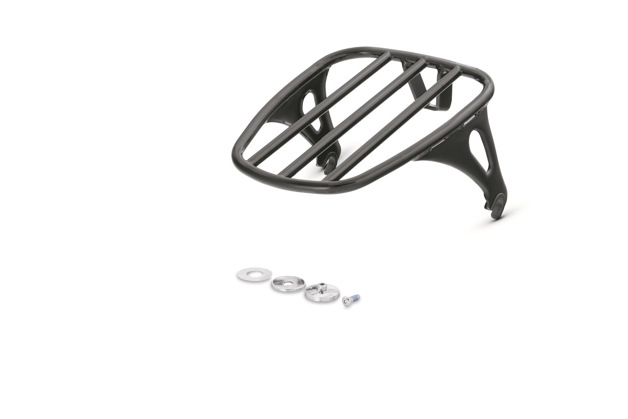 Add touring capabilities to your solo seat Softail model in less than 60 seconds. This detachable Solo Rack appears to float over the rear fender, and adds practical luggage space without compromising style. The arching support arms conveniently slip over the forward docking points, and the rack is held firmly in place by the seat attachment hardware for easy removal and installation. And when you want to add a two-up seat and ride with a passenger, the Solo Rack is easily interchangeable with HoldFast™ Passenger Sissy Bars or Two-Up Luggage Racks for added versatility. Fits '18-later FLSL and FXBB models equipped with solo seats. Installation requires separate purchase of model-specific Docking Hardware Kit.