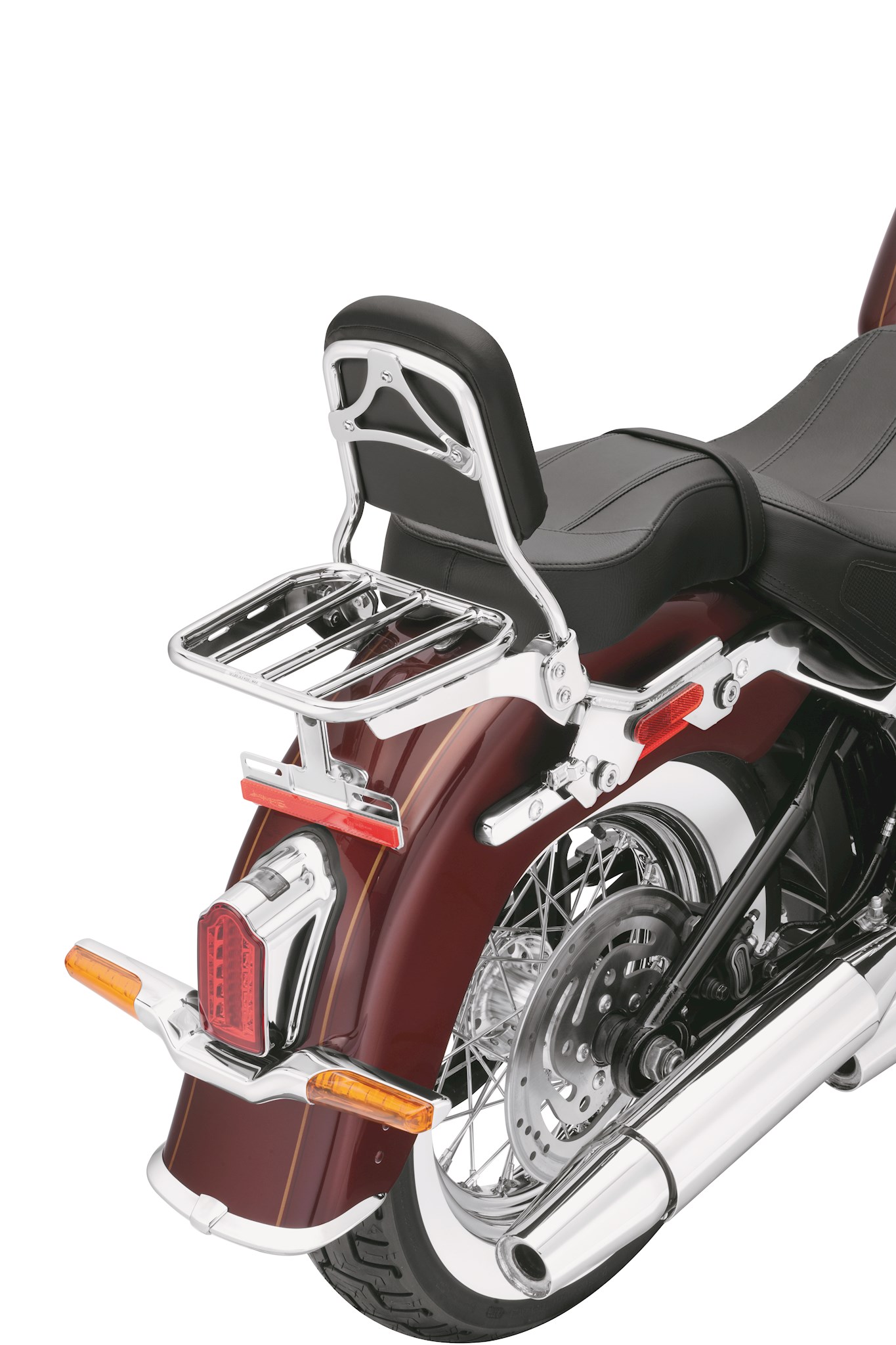 Smooth sweeping curves and the brilliant chrome or gloss black finish defines the look of this Sport Luggage Rack. Designed to complement both short and standard-height HoldFast Sissy Bar Uprights, this sleek rack adds a practical and stylish touch to the motorcycle. When firmly bolted to the to the HoldFast Sissy Bar system, the combined backrest and luggage rack can be installed or removed from the bike in seconds for a truly versatile touring or cruising machine. For convenient packing, the side supports of these round bar racks are slotted to accept nylon luggage tie-down straps. Fits '18-later FLDE, FLHC, FLHCS, FLSL and FXBB models equipped with HoldFast Sissy Bar Upright.
