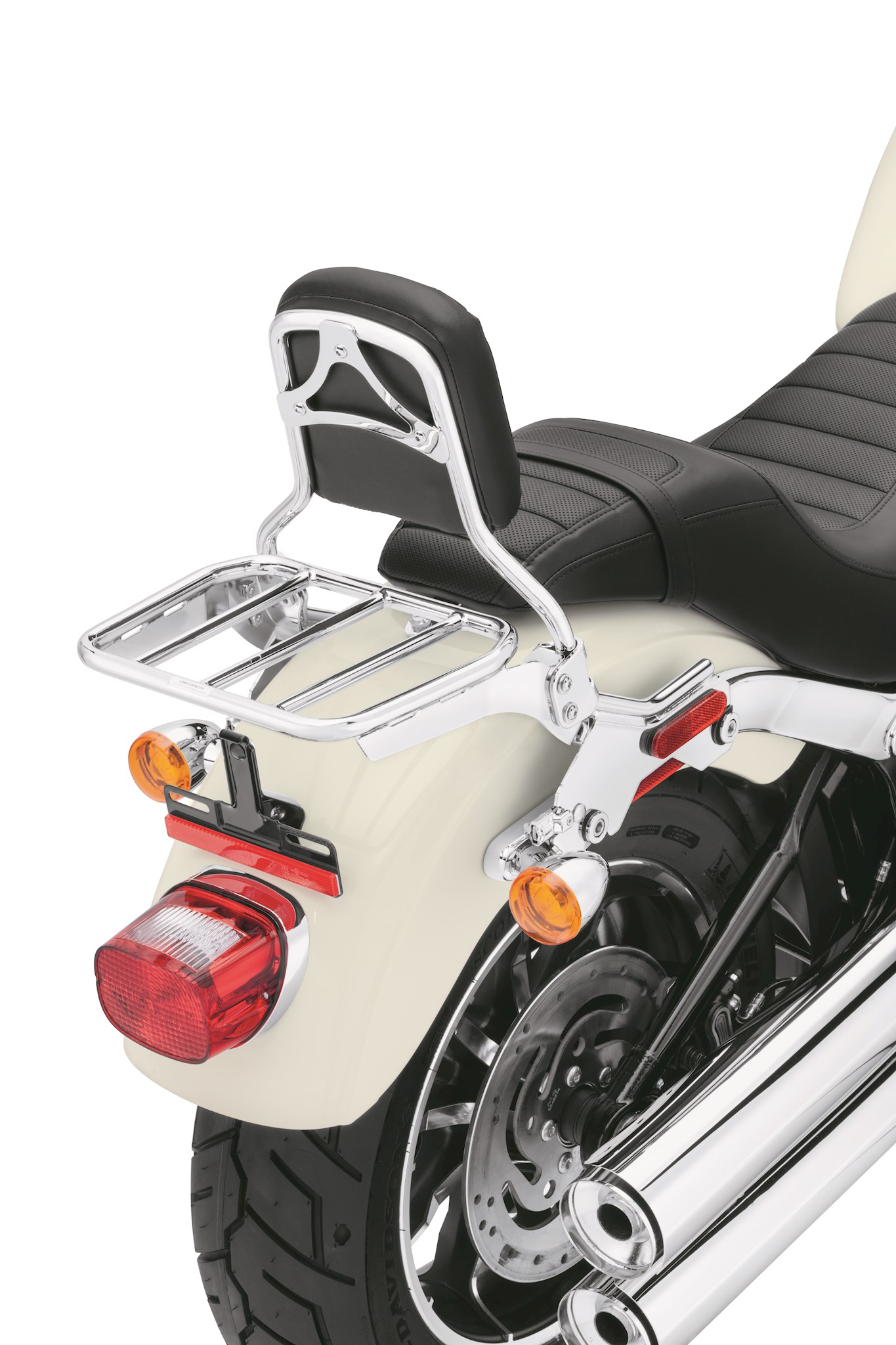 Smooth sweeping curves and the brilliant chrome or gloss black finish defines the look of this Sport Luggage Rack. Designed to complement both short and standard-height HoldFast Sissy Bar Uprights, this sleek rack adds a practical and stylish touch to the motorcycle. When firmly bolted to the to the HoldFast Sissy Bar system, the combined backrest and luggage rack can be installed or removed from the bike in seconds for a truly versatile touring or cruising machine. For convenient packing, the side supports of these round bar racks are slotted to accept nylon luggage tie-down straps. Fits '18-later FXFB, FXFBS and FXLR models equipped with HoldFast Sissy Bar Upright.