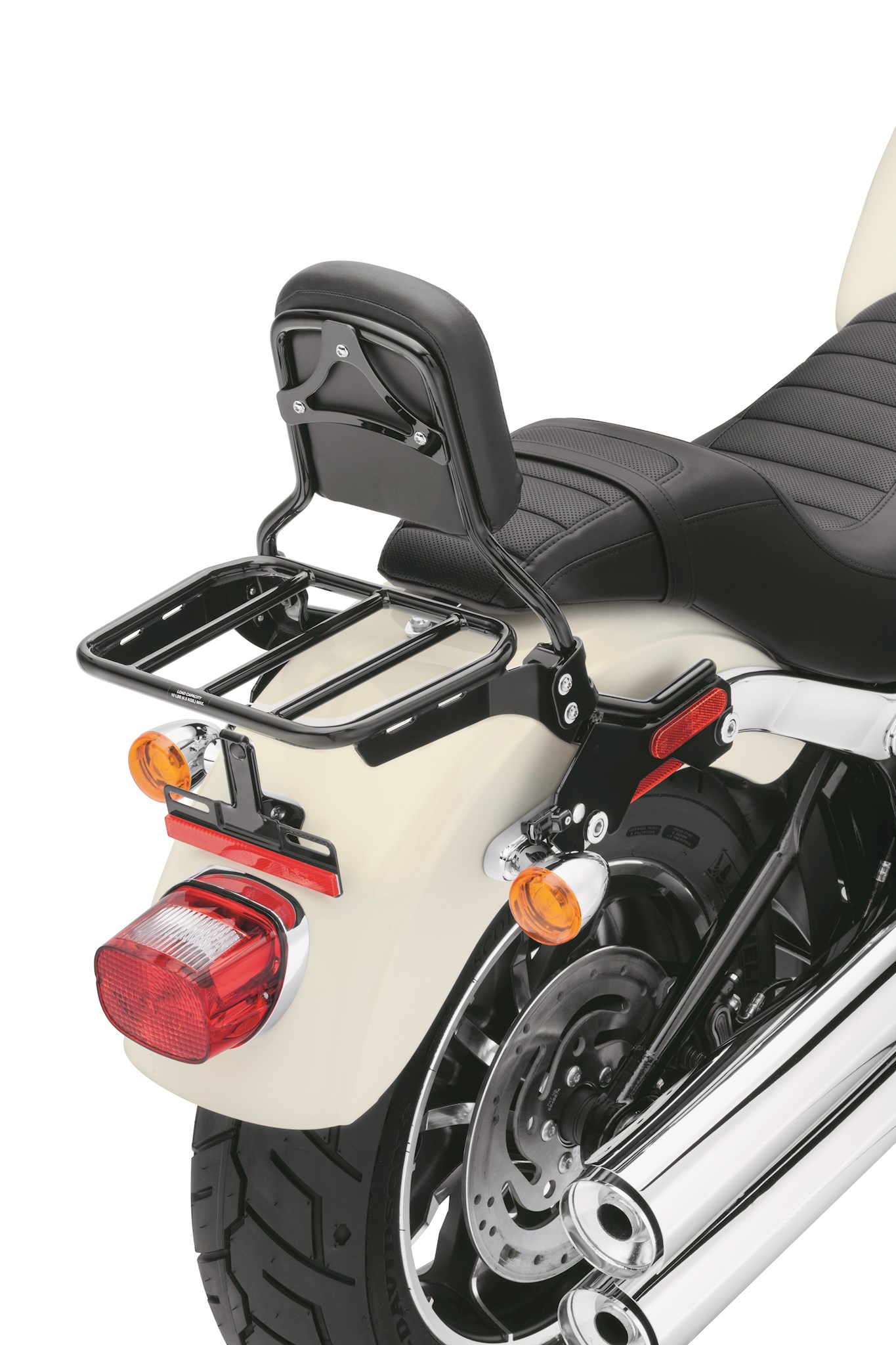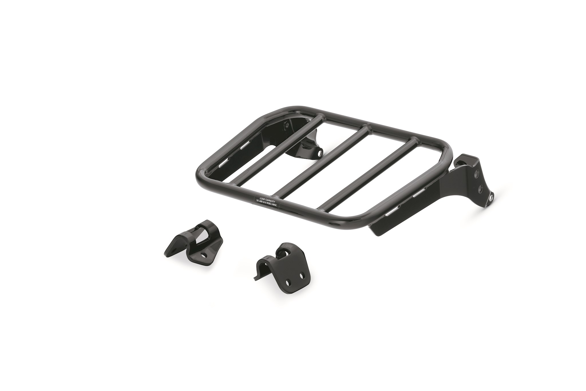 Smooth sweeping curves and the brilliant chrome or gloss black finish defines the look of this Sport Luggage Rack. Designed to complement both short and standard-height HoldFast Sissy Bar Uprights, this sleek rack adds a practical and stylish touch to the motorcycle. When firmly bolted to the to the HoldFast Sissy Bar system, the combined backrest and luggage rack can be installed or removed from the bike in seconds for a truly versatile touring or cruising machine. For convenient packing, the side supports of these round bar racks are slotted to accept nylon luggage tie-down straps. Fits '18-later FXFB, FXFBS and FXLR models equipped with HoldFast Sissy Bar Upright.