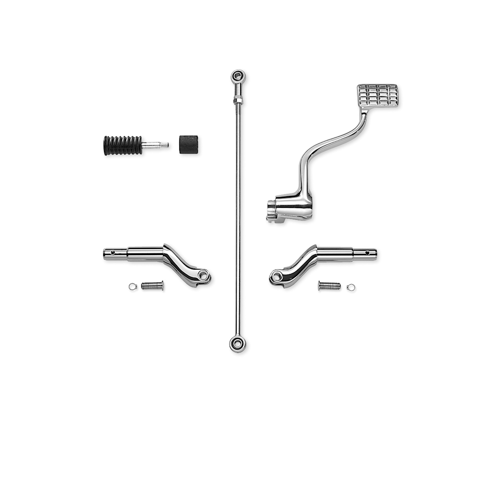 Shorten your reach to the V-Rod motorcycle forward controls with this complete foot control relocation kit. Designed for the shorter rider, this kit brings the footpegs and the shift and brake levers back and up toward the rider by 1". When combined with a Reduced Reach® Seat, your reach is reduced up to 2". Complete kit includes shift linkage, brake lever, shifter peg and footpeg mounts.
