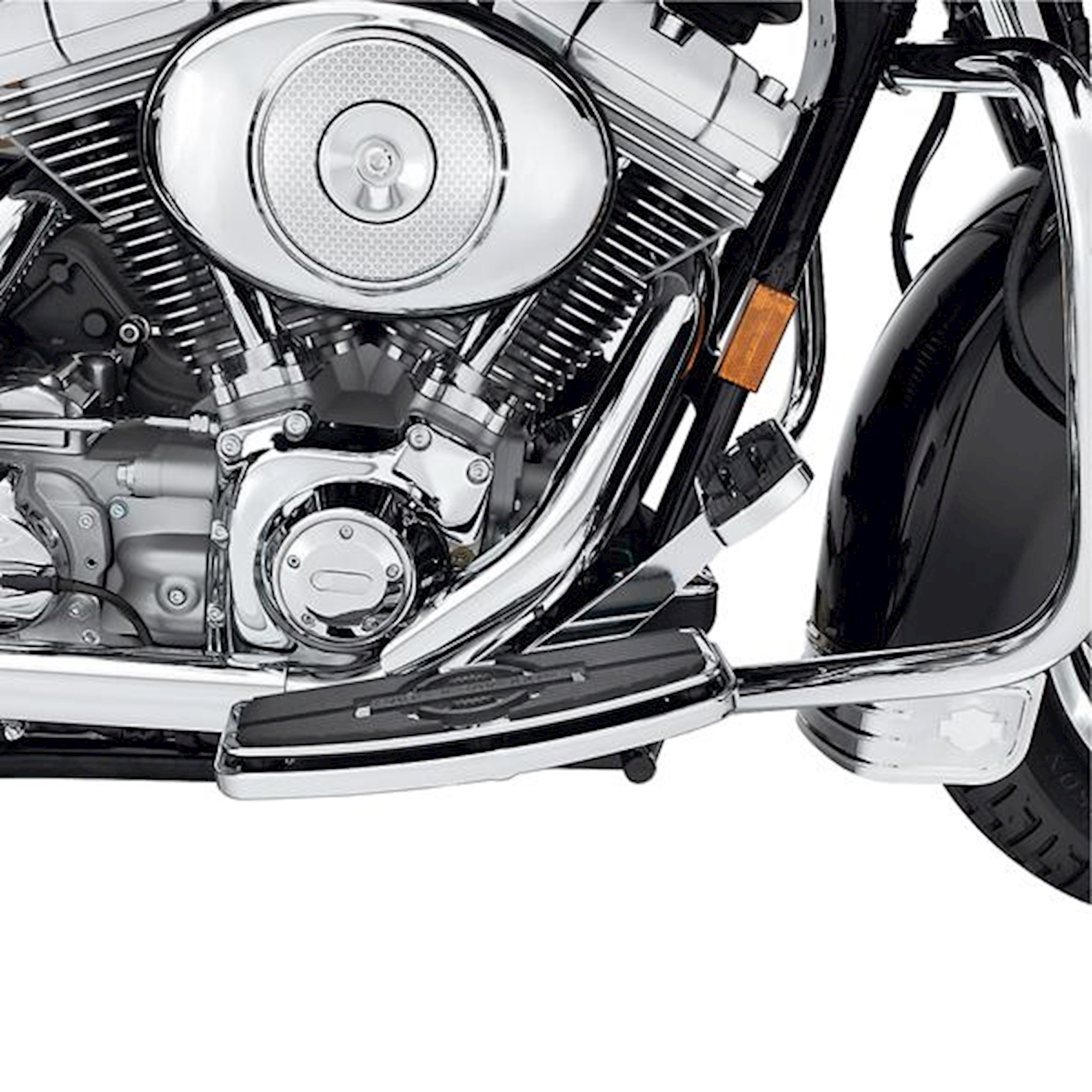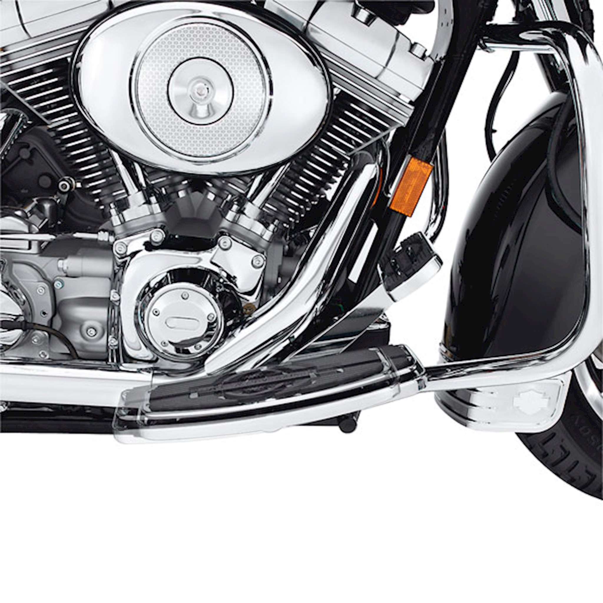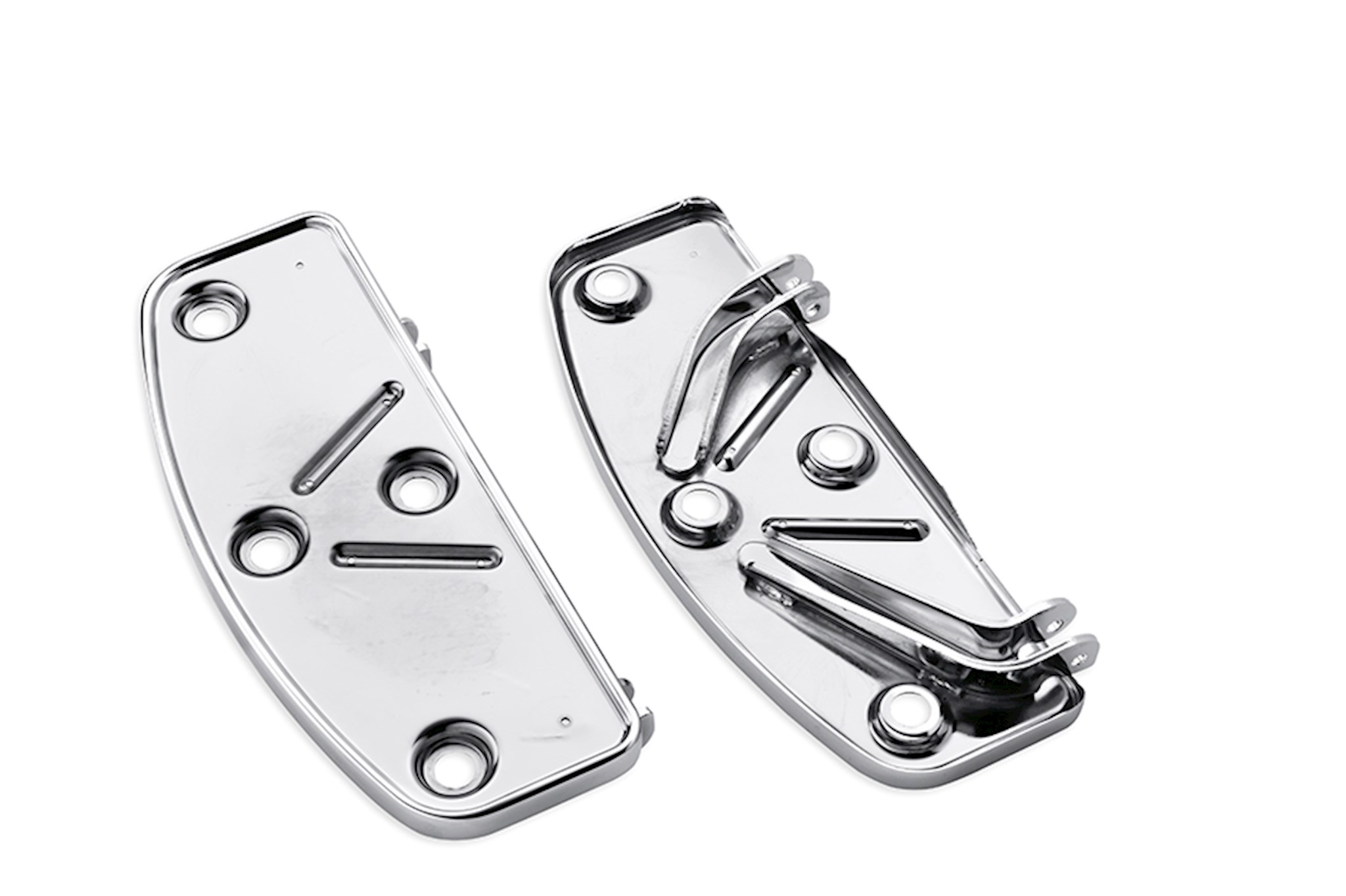 This kit extends the rider footboard forward of the stock location by one inch, providing the tall rider a comfortable riding position. When paired with Extended Reach Brake and Shift Levers, these pans allow riders with large boot sizes ample room to reposition their feet during a long ride. Available in traditional D-shape or Swept Wing design, Extended Reach footboard pans accept Original Equipment or accessory rider footboard inserts. The kit includes left and right footboard pans. Fits '02-later Touring and Trike models (except FLHTKL and FLHTCUL). Also fits '97-'01 Touring models equipped with Extended Reach Billet Style Brake Lever P/N 42638-03