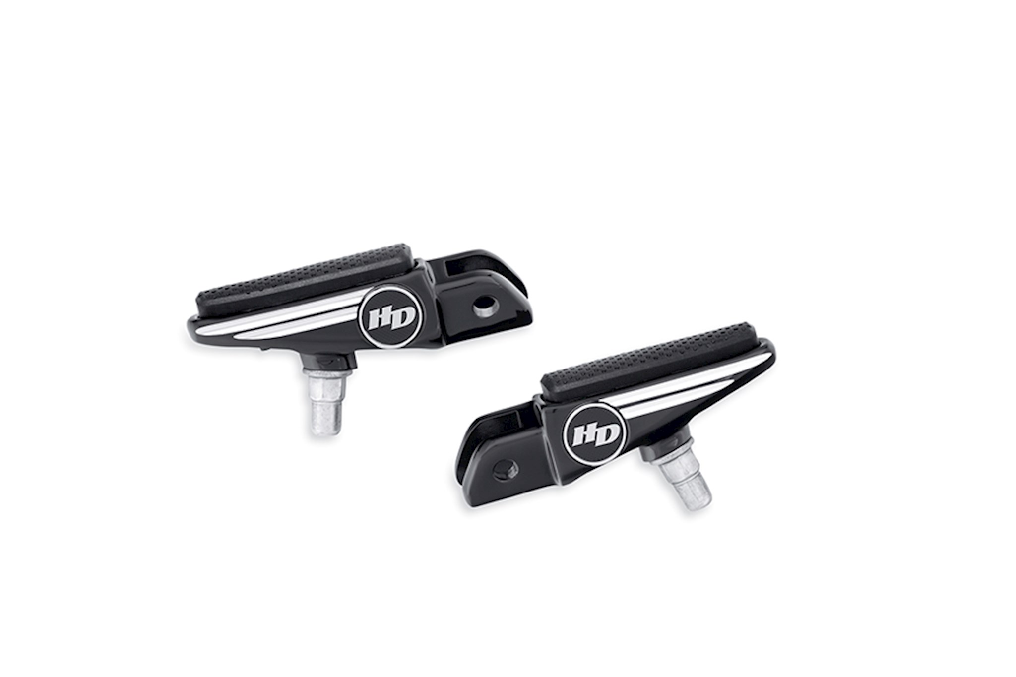 Topped with high-traction rubber, these custom aluminum footpegs feature a pattern of deep lateral grooves and a stylized H-D logo for a modern sleek look.