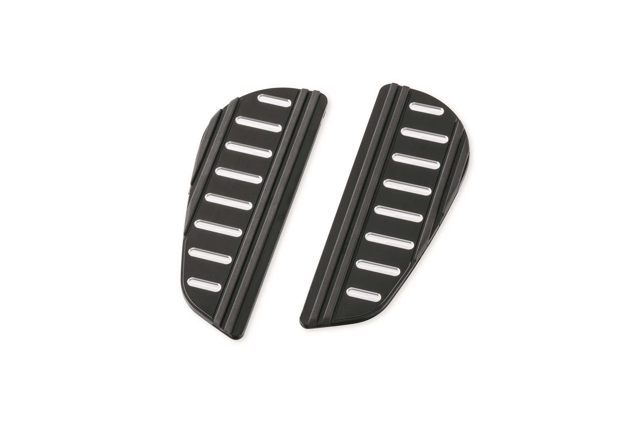 Styled to complement the Edge Cut Collection Foot Controls and machined from billet aluminum, these footboard inserts retain the cast-in vibration isolation found on Original Equipment footboards. The over-molded rubber provides both comfort and traction while riding. Kit includes right and left insert.