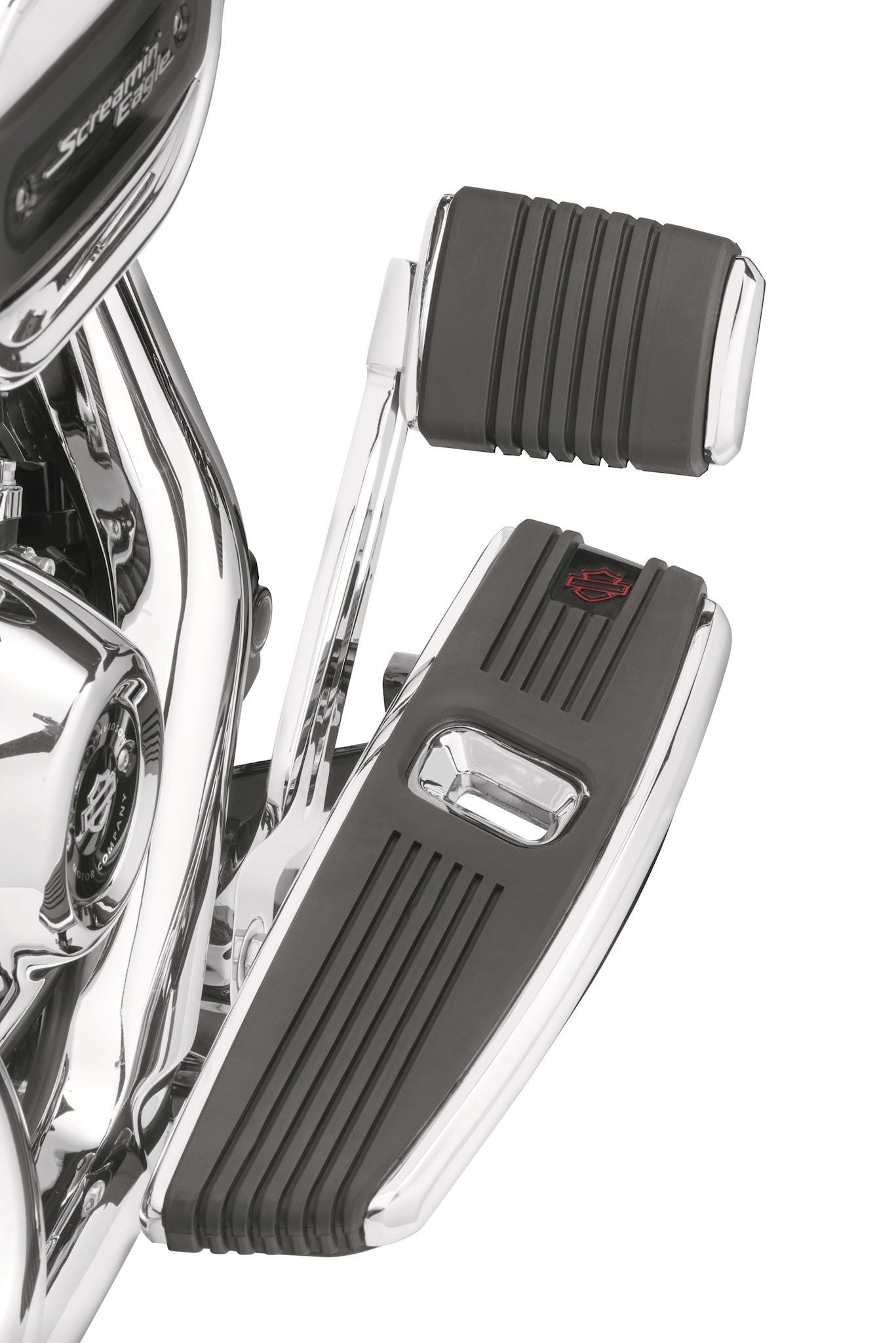 Understated but powerful, The Kahuna Collection Controls feature mirror-like chrome surfaces surrounded by rich, black rubber that provides grip and traction where needed. These chrome controls are styled to complement other Kahuna Collection Accessories and, the Rider Footboards also feature a rich red Bar & Shield logo to complete the look.