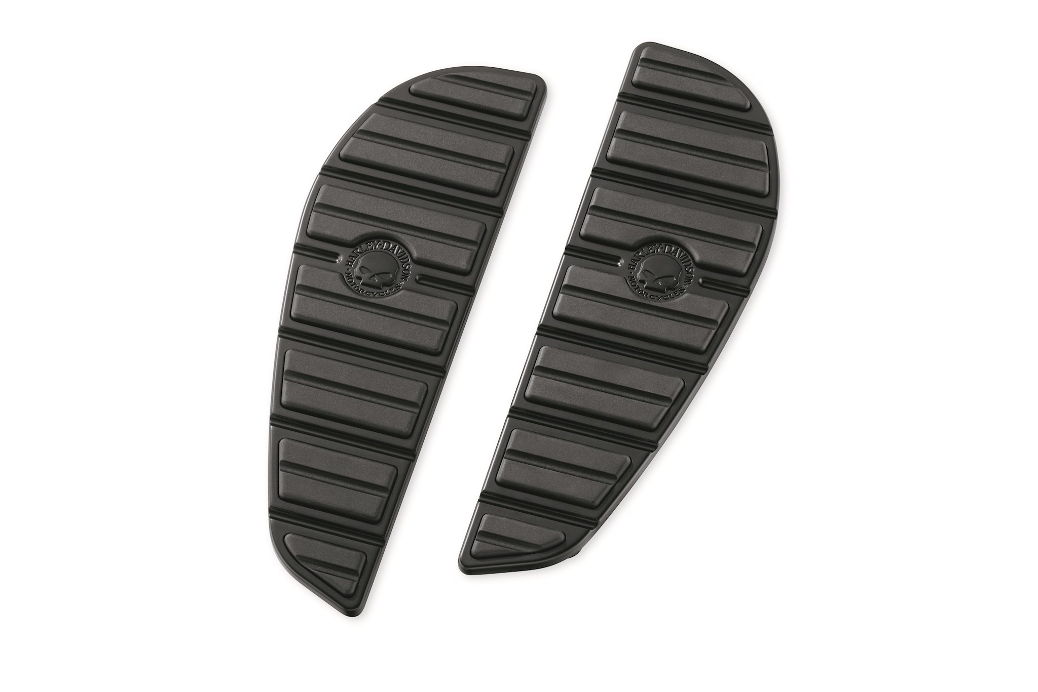 WILLIE G SKULL COLLECTION - BLACK As vast and infinite as your style, these Willie G Skull Collection Accessories are drenched in rich obsidian black and let you take the blacked-out look to a whole new level. The menacing dimensional skull and surrounding Harley-Davidson Motorcycles script add just the right touch of attitude to their clean, dark as night backdrops. Drenched in black and styled to match the Willie G Skull Collection Accessories, these footboard inserts retain the cast-in vibration isolation found on Original Equipment footboards. The over-molded rubber provides both comfort and traction while riding. Kit includes right and left insert.