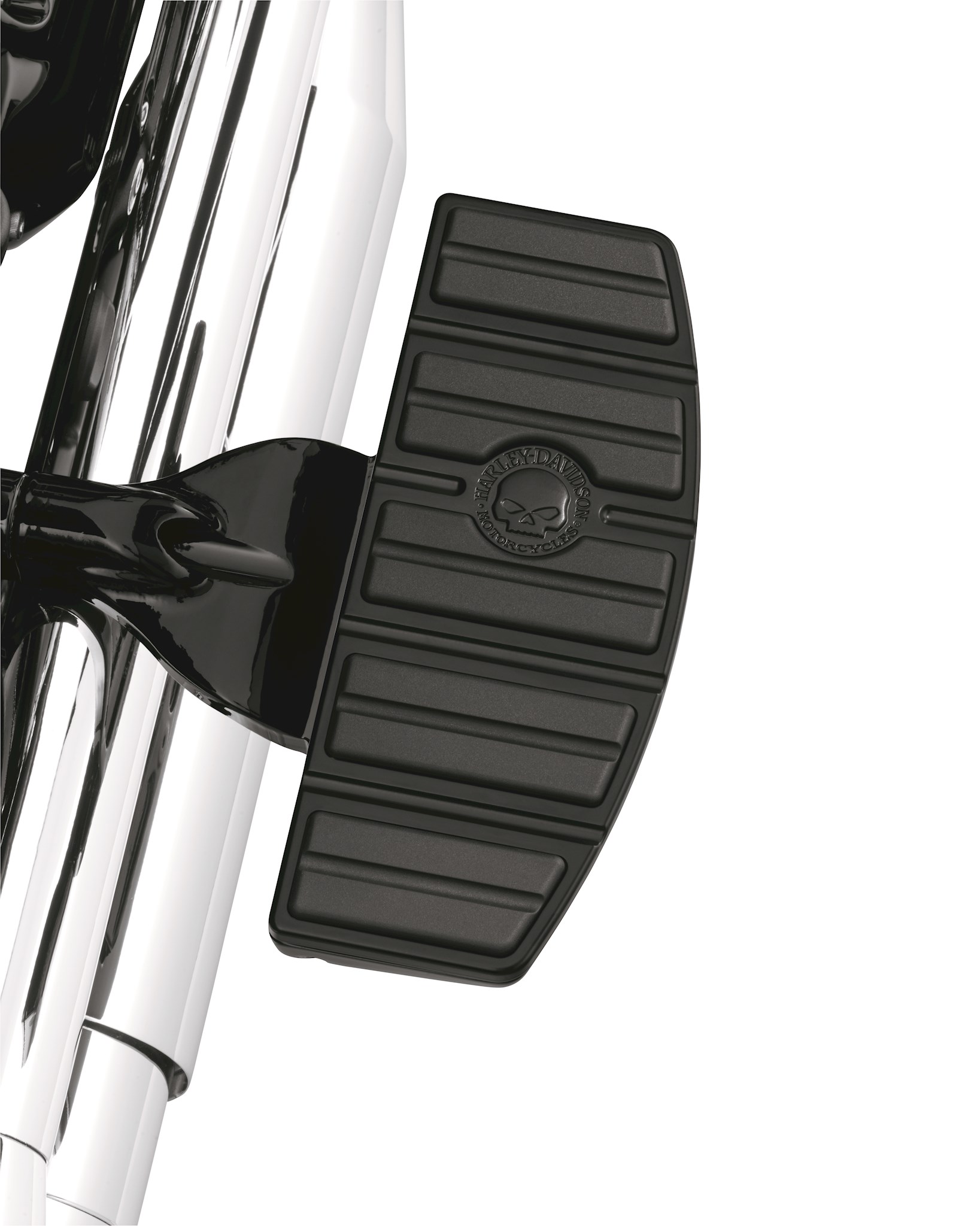 WILLIE G SKULL COLLECTION - BLACK As vast and infinite as your style, these Willie G Skull Collection Accessories are drenched in rich obsidian black and let you take the blacked-out look to a whole new level. The menacing dimensional skull and surrounding Harley-Davidson Motorcycles script add just the right touch of attitude to their clean, dark as night backdrops. Drenched in black and styled to match the Willie G Skull Collection Accessories these footboard inserts retain the cast-in vibration isolation found on Original Equipment footboards. The over-molded rubber provides both comfort and traction while riding. Kit includes right and left insert.