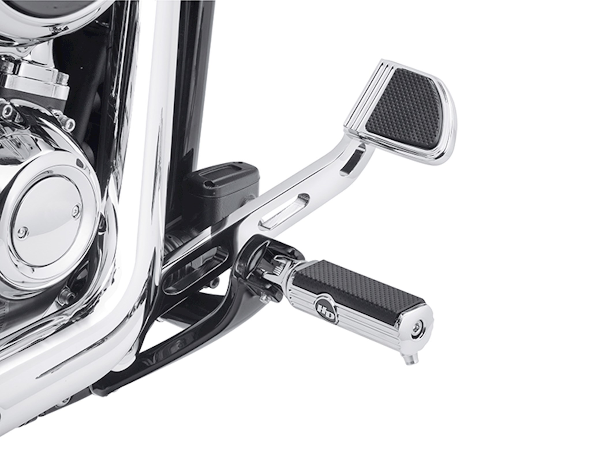 This stylish brake pedal pad features a rich black rubber panel set into the recessed surface, surrounded by deep accent grooves.