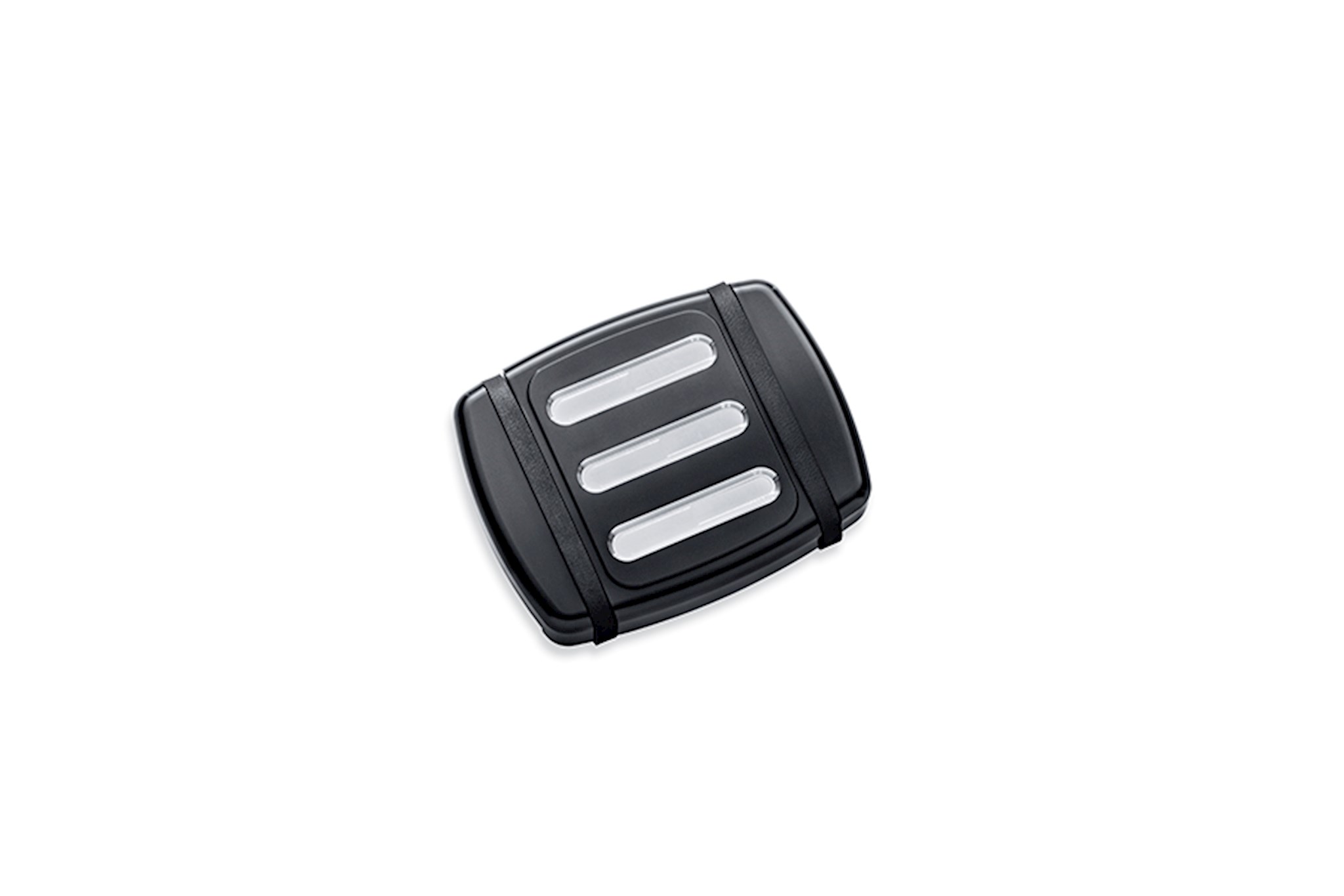 Available in two sizes, the brake pedal pads feature deep surface grooves and narrow rubber bands for traction during application.