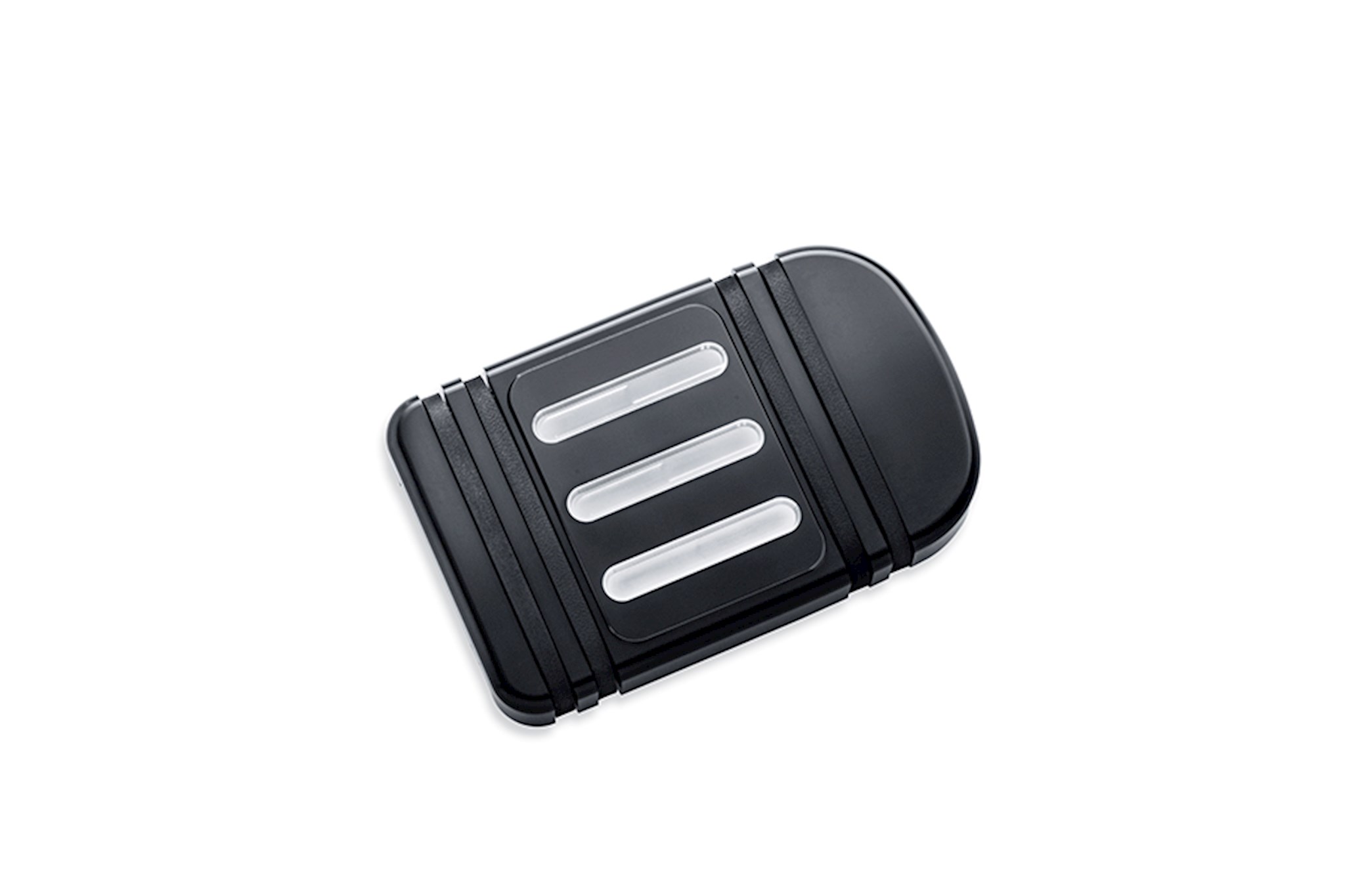 Available in two sizes, the brake pedal pads feature deep surface grooves and narrow rubber bands for traction during application.