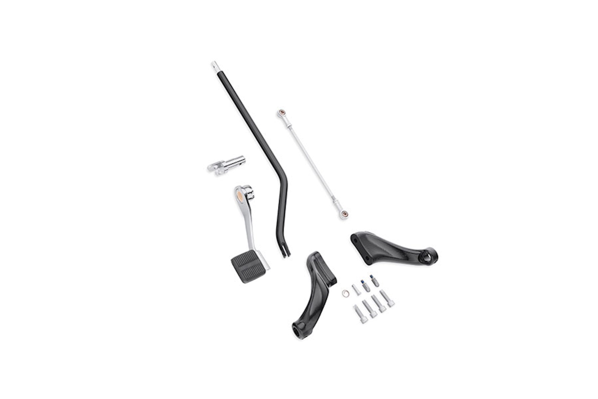 This kit extends the rider foot controls a full 3.5" forward, .9" out, and .375" up of the stock location, providing the tall rider a stretched out comfortable riding position. This comprehensive kit includes everything necessary for installation. The kit includes brake and shifter mounting brackets, brake lever, brake and shift linkage, replacement wear pegs, and all the required hardware. The kit is compatible with Original Equipment or accessory foot pegs, shifter pegs and small brake pedal pads.