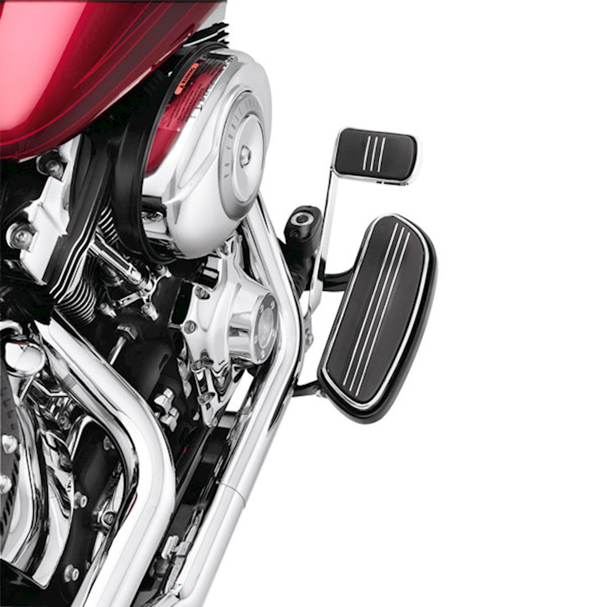 Complete the blacked-out transformation. Replace the Original Equipment chrome footboard pans with sinister gloss black. Kit includes both the right and left pan, and is installed using the Original Equipment hardware and insert pad. Custom footboard inserts are sold separately. Fits '12-later Dyna FLD, '86-later FL Softail (except FLS and FLSTFB), Touring and Trike models (except FLHTKL and FLHTCUL).