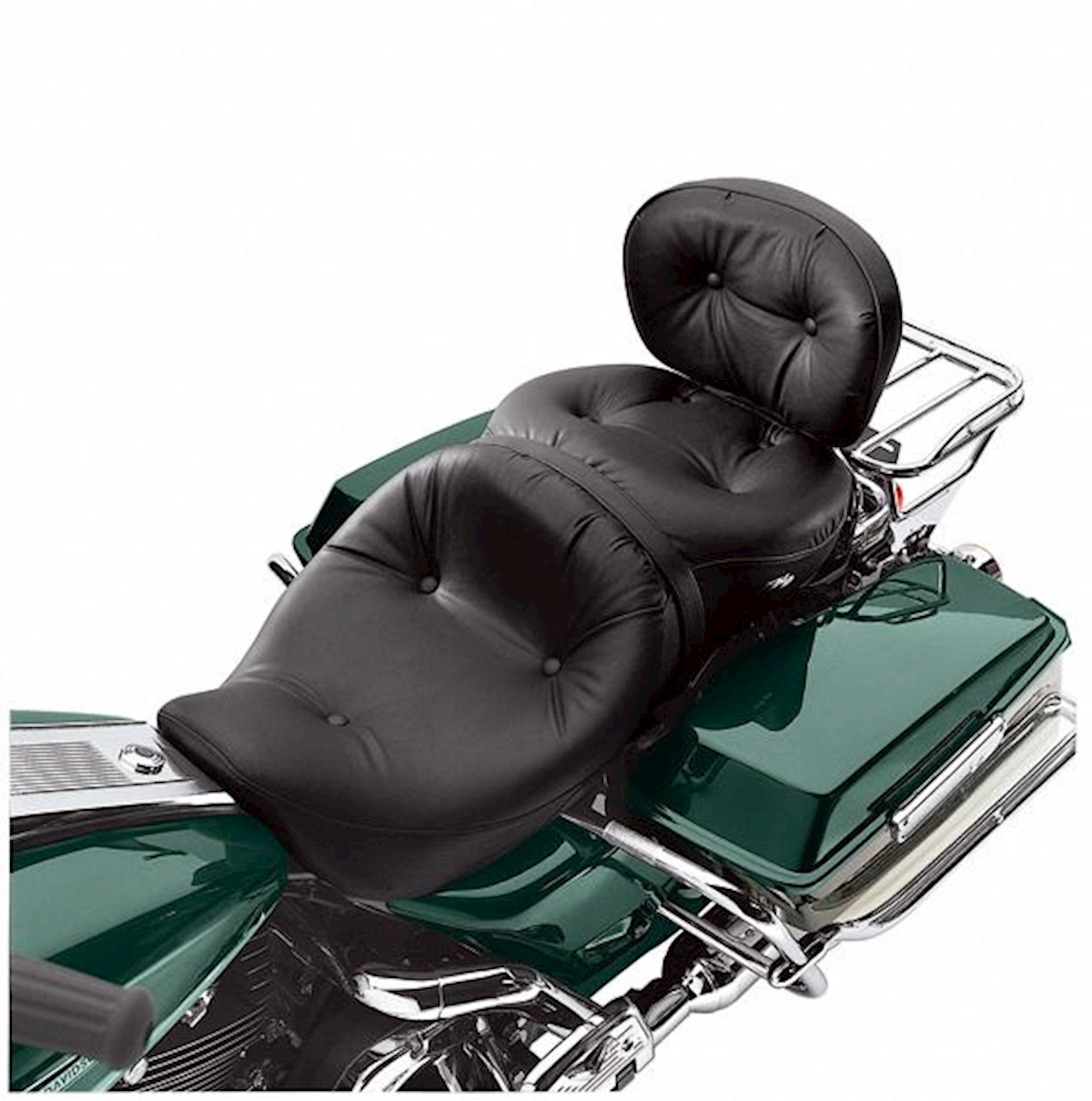 Get the style and comfort of a pillow-look seat with a design and fitment made exclusively for Touring models. This seat offers a wide rider and passenger area for comfort over the long haul. Accepts rider backrest for additional touring comfort.