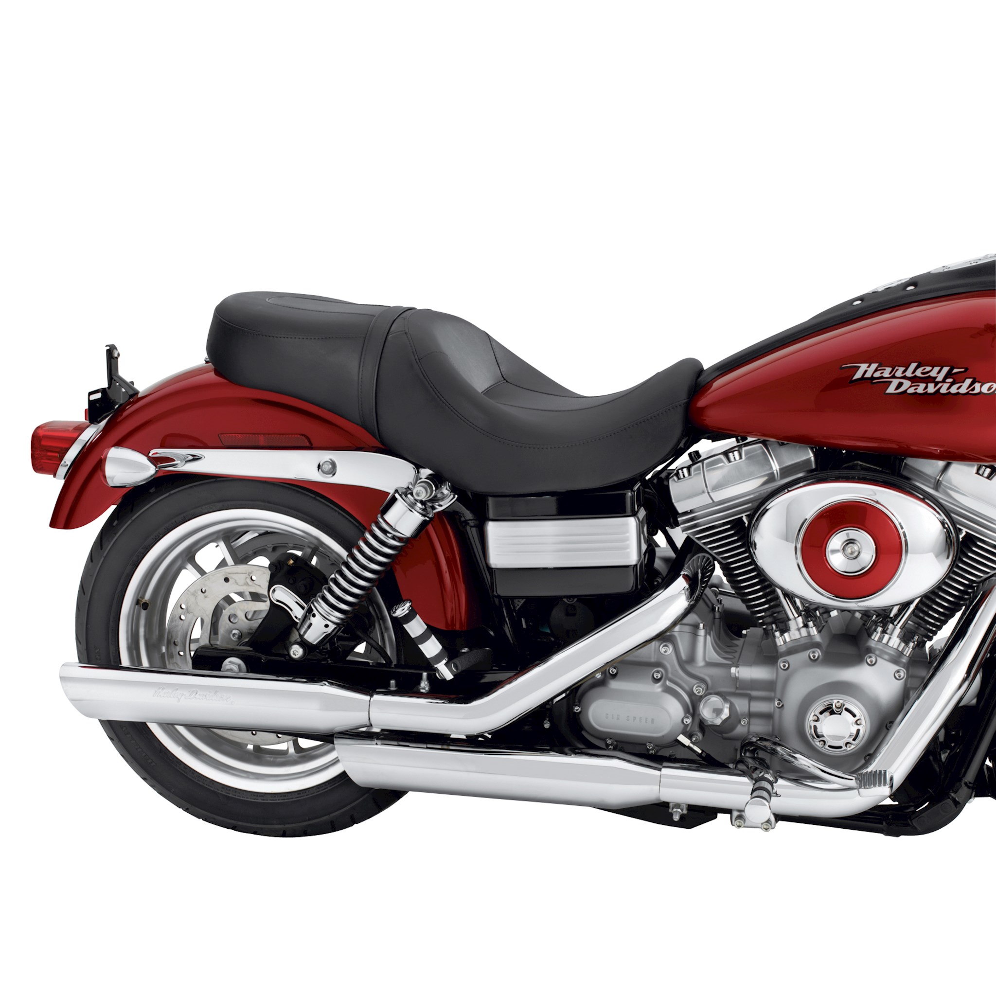 For those looking for long-range comfort when riding their Dyna motorcycle, this Touring Seat delivers. The seat is styled to complement the Wide Glide® motorcycle Original Equipment seat and the deep bucket rider position and the wide passenger pillion are shaped to provide additional passenger room and comfort.