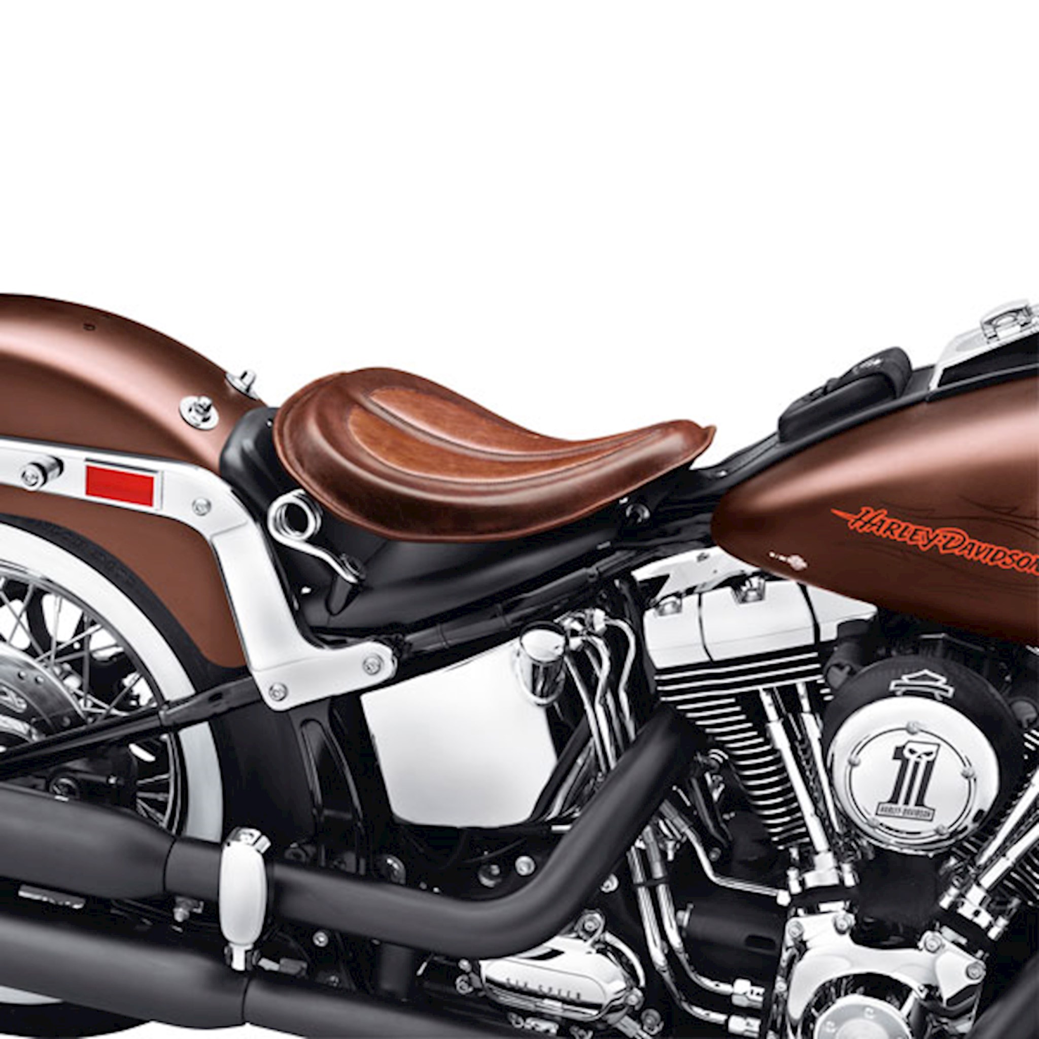 Add nostalgic “bobber” looks to your modern Harley-Davidson® motorcycle. Available in elegant leather, this solo seat features a low-profile design that provides the minimalistic “just enough to ride” look. The smooth metal seat pan and the simple frame cover leave a clean, finished appearance. Easy to install, the bolt-on seat and model-specific Spring Seat Installation kit include everything you need to get the bobber look. No cutting, welding or fabrication is necessary and the seat can be removed and replaced with a touring seat for a two-up night on the town.