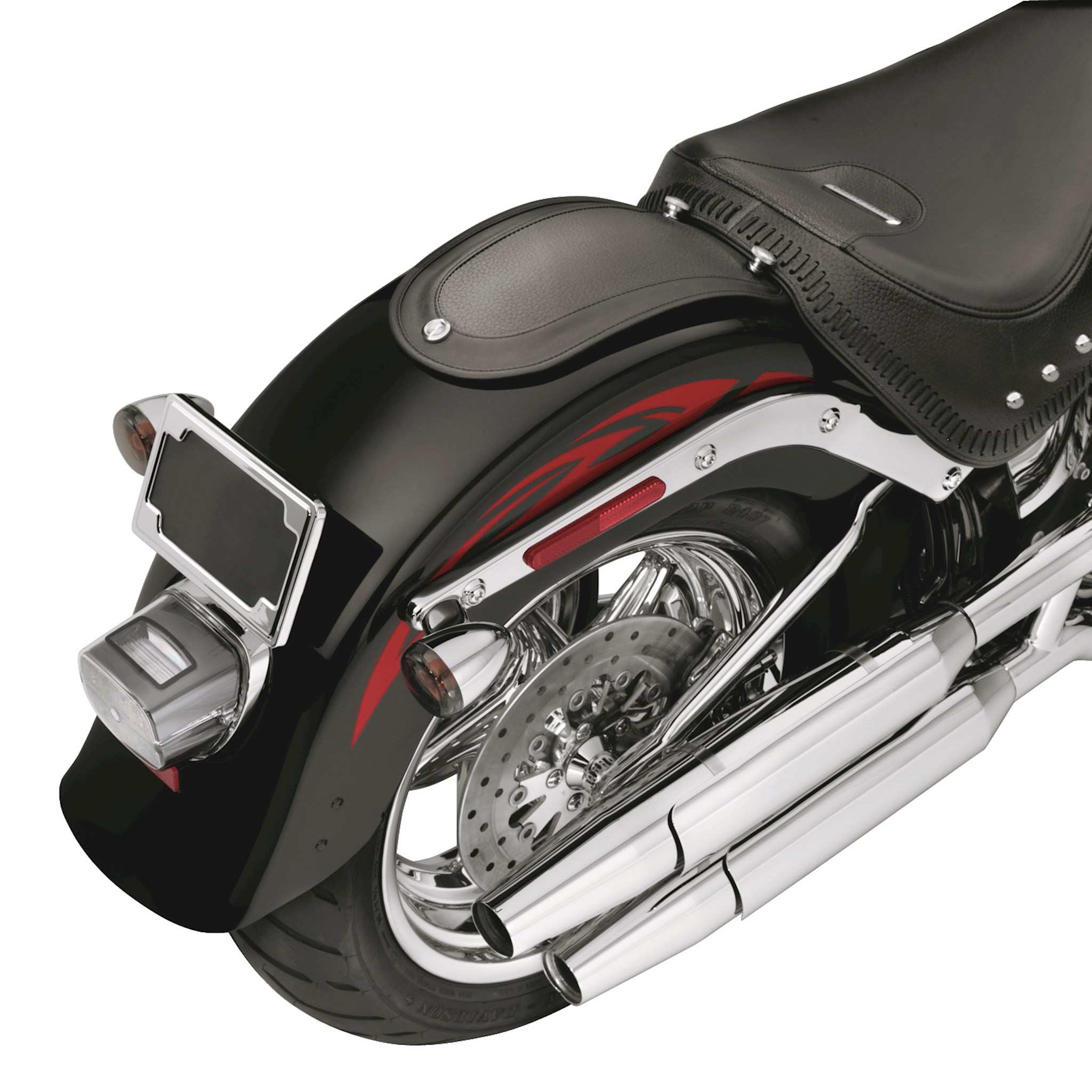 Complete the stripped-down solo look by replacing the Fat Boy model's Original Equipment passenger pillion with this decorative fender cover. Form-fitted to hug the contour of the rear fender, this decorative fender cover hides the passenger pillion mounting holes that are exposed when riding with a solo seat. Styled to match the Original Equipment solo seat, the Fender Bib features a textured leather insert to complete the custom look. The molded base is finished with a soft felt underliner designed to protect the fender's painted surface.