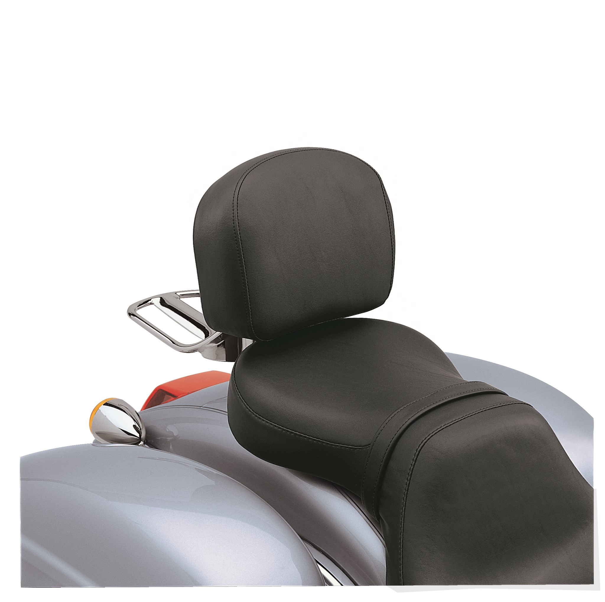 Together with the Sundowner™ Deep Bucket Seat for Softail Deuce model P/N 51112-00B, this backrest passenger pad provides additional support for the long haul with a wide radius backrest.