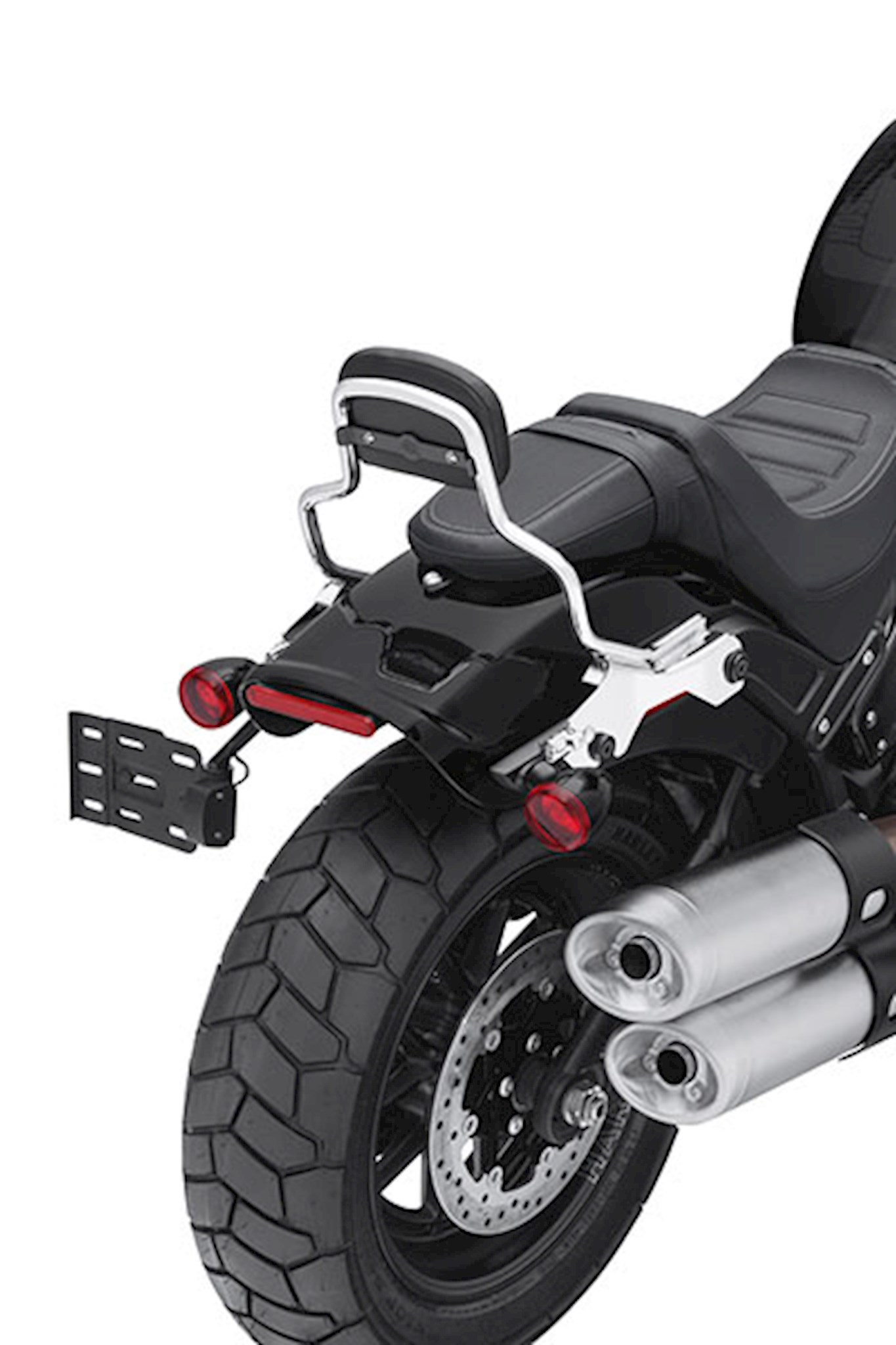 A sissy bar and passenger backrest pad is the starting point for building a complete touring machine. The backrest adds long-range comfort and support and provides a feeling of confidence and control for the passenger. HoldFast One-Piece Uprights feature an exclusive latch system that permits the backrest to be installed or removed in seconds to add versatility to your ride. The HoldFast sissy bar upright simply slips into position on the docking points, and the fingertip latches are clicked into position for a positive lock. HoldFast Sissy Bars are available in short and standard height for optimized passenger back support. A wide variety of Backrest Pads are available to match your comfort or customizing requirements, and the kit includes a matching 3-point backrest pad mount bracket. Fits '18-later FXLR models. Installation requires separate purchase of model-specific Docking Hardware Kit.
