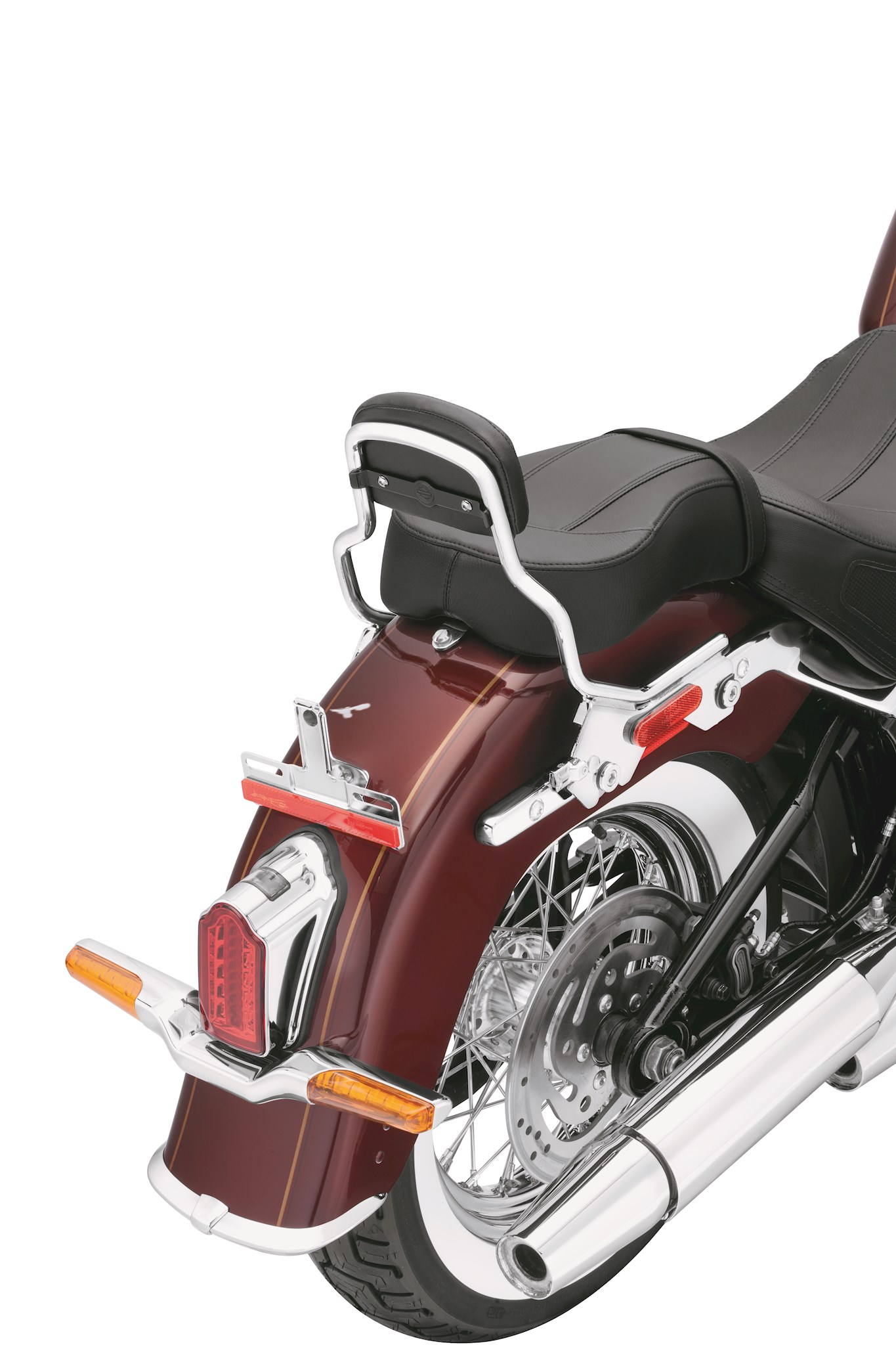 A sissy bar and passenger backrest pad is the starting point for building a complete touring machine. The backrest adds long-range comfort and support and provides a feeling of confidence and control for the passenger. HoldFast One-Piece Uprights feature an exclusive latch system that permits the backrest to be installed or removed in seconds to add versatility to your ride. The HoldFast sissy bar upright simply slips into position on the docking points, and the fingertip latches are clicked into position for a positive lock. HoldFast Sissy Bars are available in short and standard height for optimized passenger back support. A wide variety of Backrest Pads are available to match your comfort or customizing requirements, and the kit includes a matching 3-point backrest pad mount bracket. Fits '18-later FLDE, FLHC, FLHCS, FLSL, and FXBB models. Installation requires separate purchase of model-specific Docking Hardware Kit.