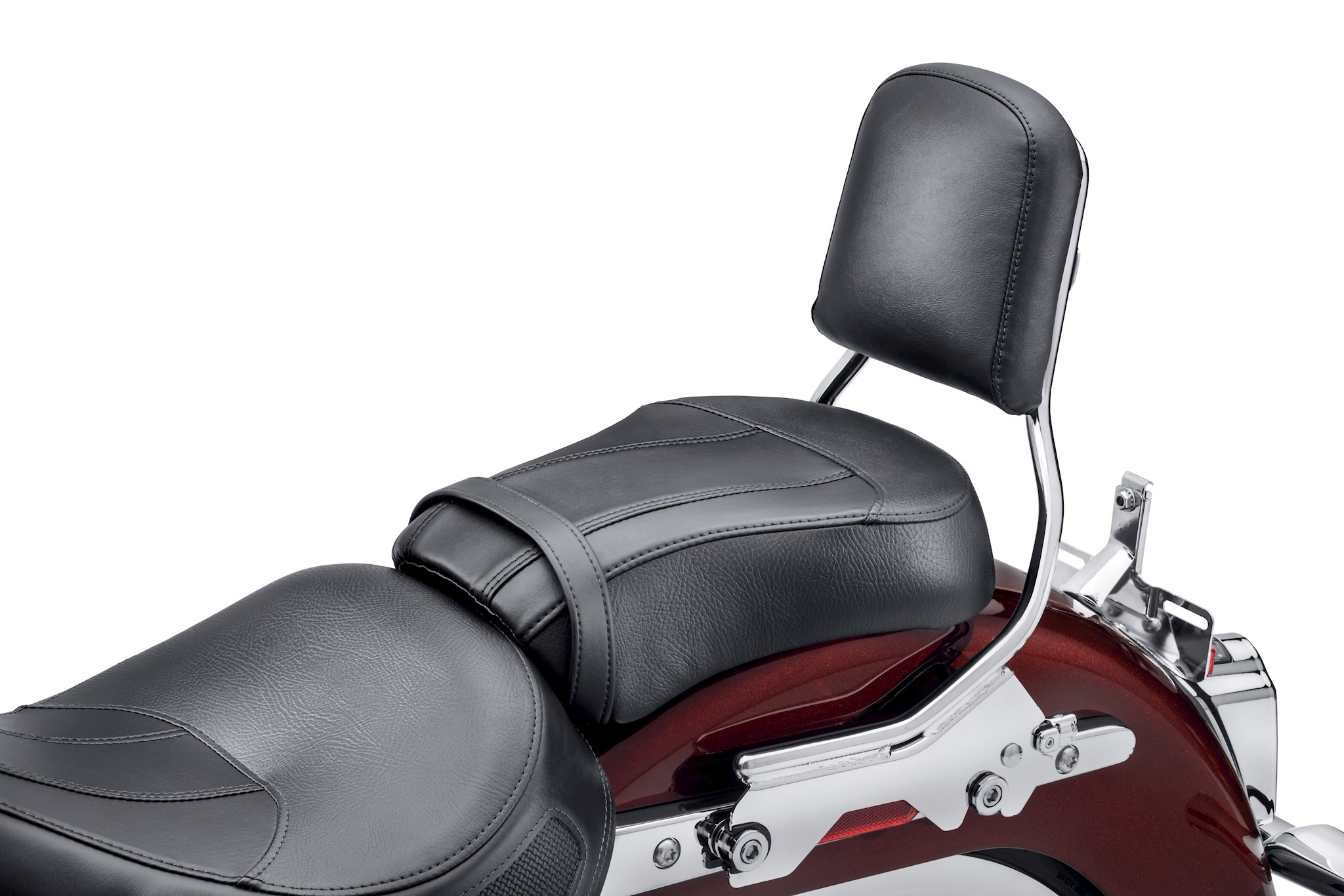 Styled to match the stitching and texture of the Softail Deluxe Original Equipment or the Reachâ„¢ solo rider seat, these stylish pillions provide an extra comfortable ride for your passenger on those long journeys. Easy to install without removal of the rider seat, this kit includes mounting hardware and matching grab strap.