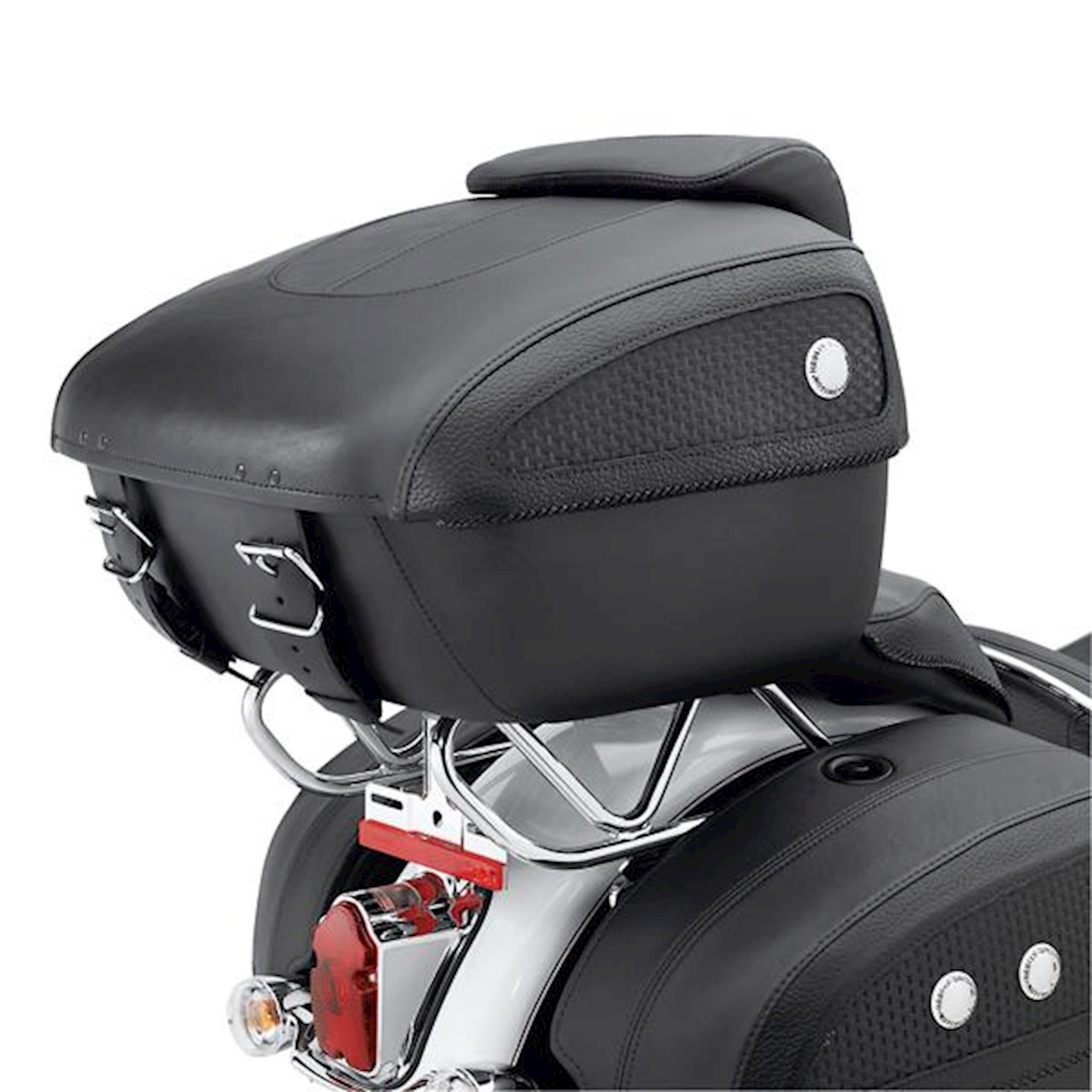 Add cross-country luggage capacity to your ride with accessory Tour-Pak Luggage. A cavernous interior will hold one full face helmet or two half helmets. Kit includes backrest pad, interior rubber mat, hardware and instructions. Luggage Capacity: 2500 cubic inches. Dimensions: 18.5" W x 17.0" D x 13.0" H. Racks and docking kits sold separately. International models may require separate purchase of License Plate Relocation Kit P/N 60095-00A Fits '04-later XL models (except XL883N, XL1200C, XL1200N and XL1200T) equipped with Solo Tour-Pak Rack. Fits '00-later Softail models (except FLS, FLSTNSE, FLSTSE/2/3 and FXCW, FXCWC FXS, FXSB, FXSBSE, FXSTD, FXSTSSE3) equipped with H-D Detachables Solo or Two-Up Tour-Pak Rack. Fits '97-'13 Touring models equipped with Detachable Two-Up or Solo Tour-Pak Racks.