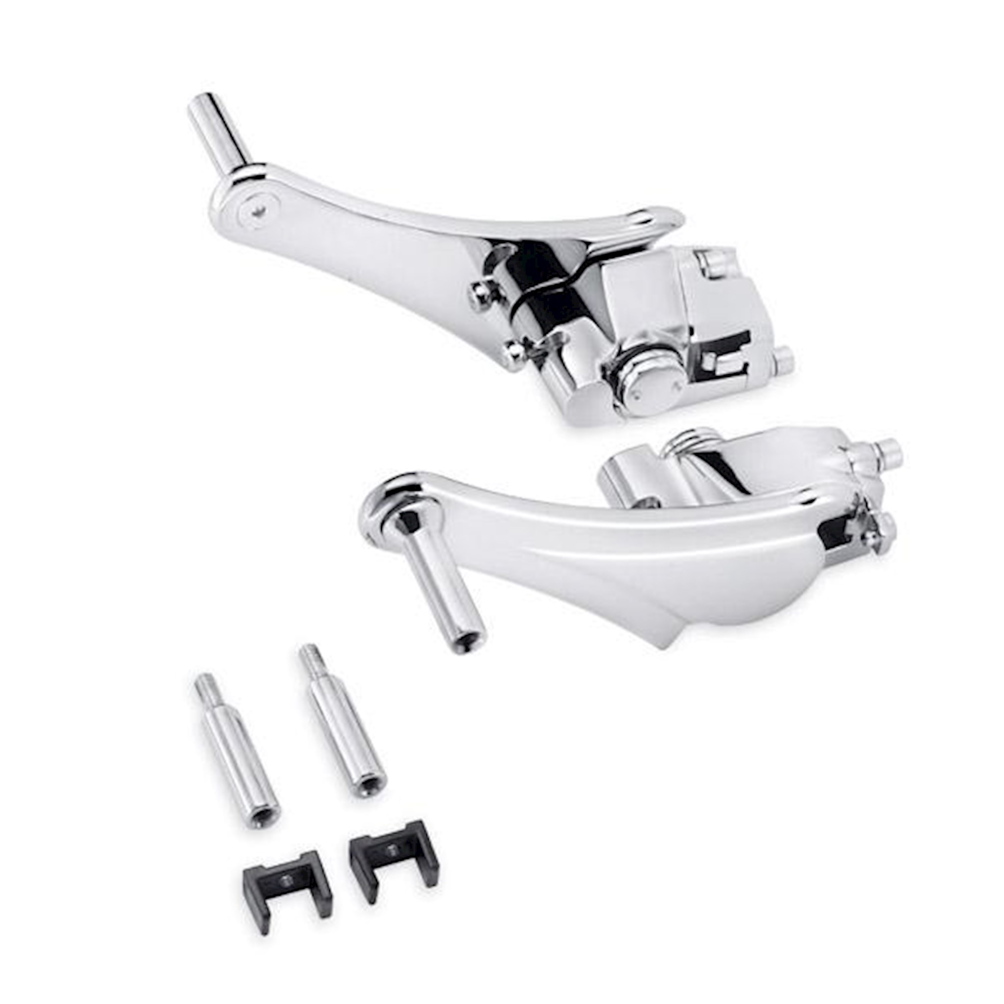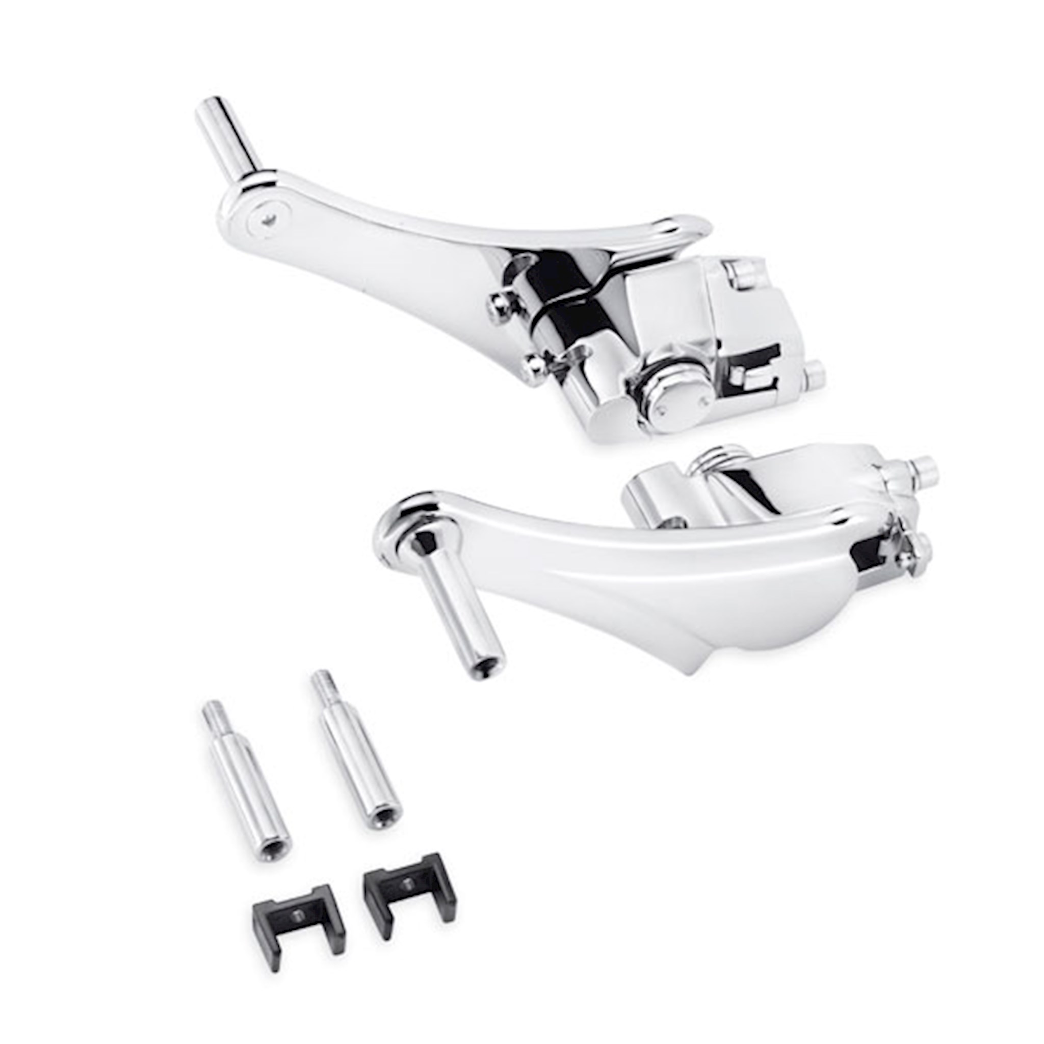 These 3-position adjustable passenger footpeg mounts will keep your companion happy over the long haul. Push-button adjustment lets the passenger reposition their feet to keep blood flowing in all the lower extremities. When combined with the standard footboard, both short and long-limbed passengers should be able to find a comfortable riding position. Pegs can also be pivoted fully rearward to allow the rider the room to get his or her feet on the ground when walking the bike in and out of parking spaces. Kit includes beautifully chromed left- and right-side adjustable mounts and all installation hardware. Complete the custom look with your choice of footpegs (sold separately).