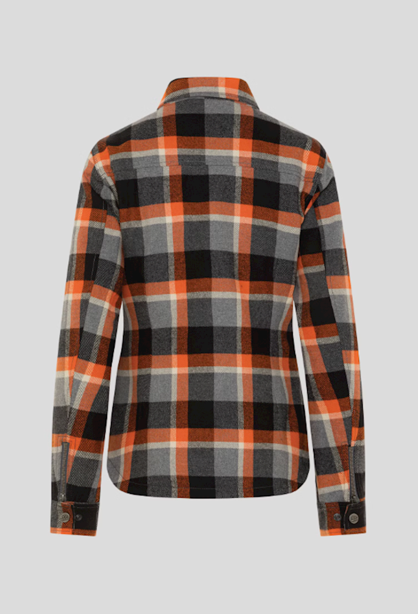 CE Level: AA approved. · Outer material: Flannel (100 % cotton). · Inner material: High abrasion resistant UHMWPE stretch denim (68 % cotton, 25 % Coolmax® polyester, 6 % polyethylene, 1 % elastane). · Integrated protector pockets on shoulders, elbows and back. · Climate regulating through Coolmax®. · Breathable: No sweating, even in hot temperatures. · Wind repellent: Prevents the body from cooling down on longer rides. · Button down collar. · Hidden front zipper and press buttons. · Two chest pockets with press buttons. · Two inside zip pockets. · Zipper at sleeve hem.. · Ventilation zip in armpit. · Care instruction: Washable at 30°, iron at low temperature, please remove the Protectors before washing. · Do not bleach, do not tumble dry, do not dry clean. · Including Sas-Tec Air shoulder and elbow protectors.