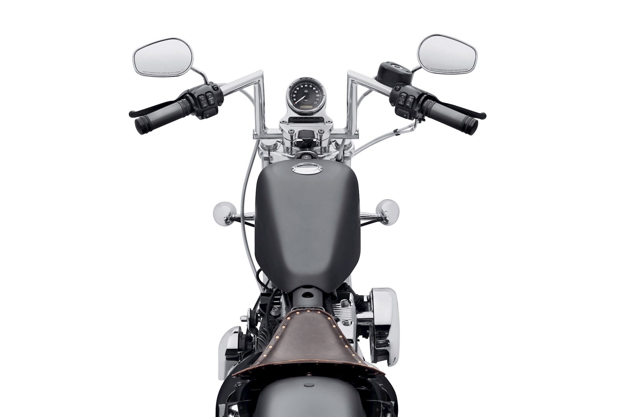 With a low-profile 4.0" rise and a narrow lane-splitting 27" width, this compact Z-bar bar will give your bike a classic West Coast look. The 1.0" Chizeled Bar replaces mitered and welded corners with cast seamless 90° bends for added strength and style. The cast elbows eliminate sharp internal bends and the bar features removable Bar & Shield plugs to simplify internal wiring. Fits '07-later XL883L, XL883N, XL1200L, XL1200N, XL1200T, XL1200V and XL1200X models. Does not fit with Heated Hand Grips. All models require separate purchase of additional components.