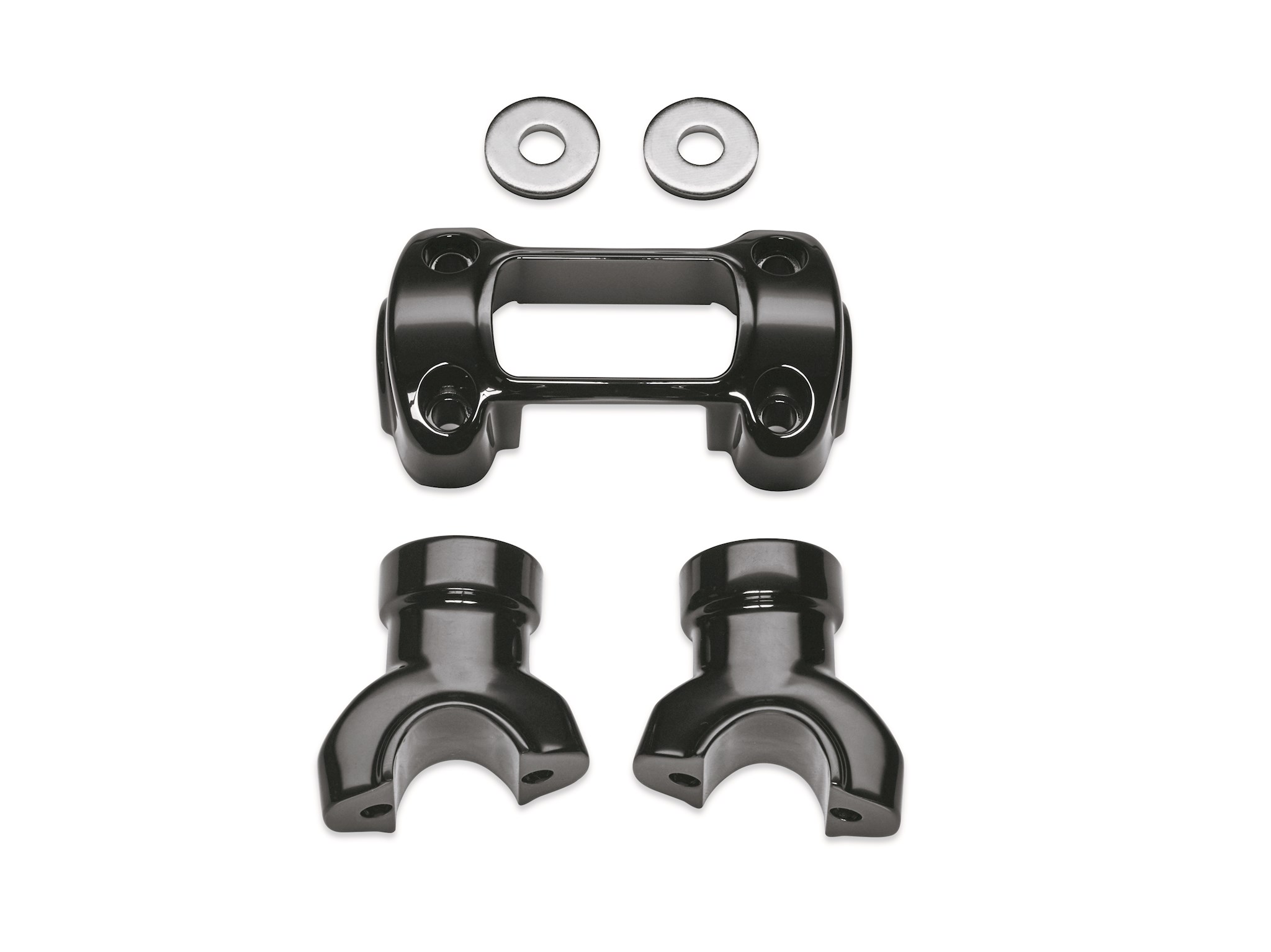 Required for installation of 1.25" handlebars on select '18-later Softail models, this straight riser changes the riding position, placing your hands and arms higher. These risers feature a one-piece top clamp that is shaped to accept the Original Equipment clamp-mounted digital gauge package. Kit includes two curved risers and one-piece clamp.