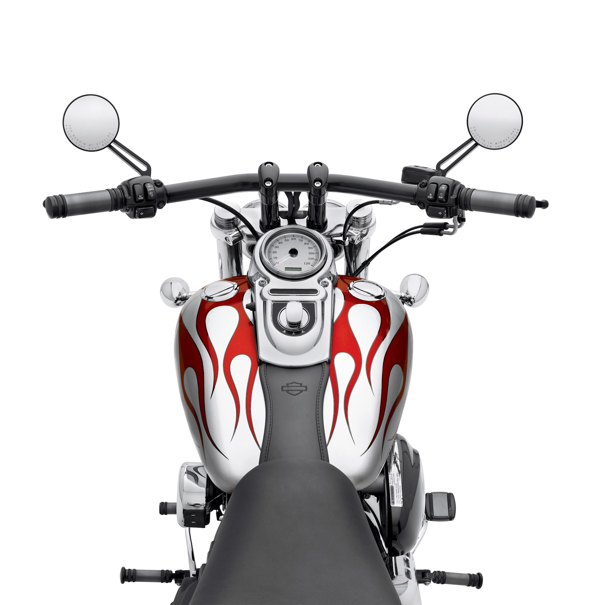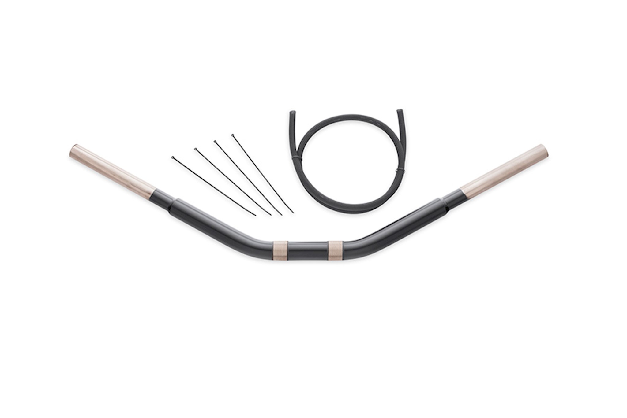Complete the transition to the "dark side." Elegant satin-black finished handlebar retains the comfortable contour of the Original Equipment bar and complements the black finished hand controls and mirrors.