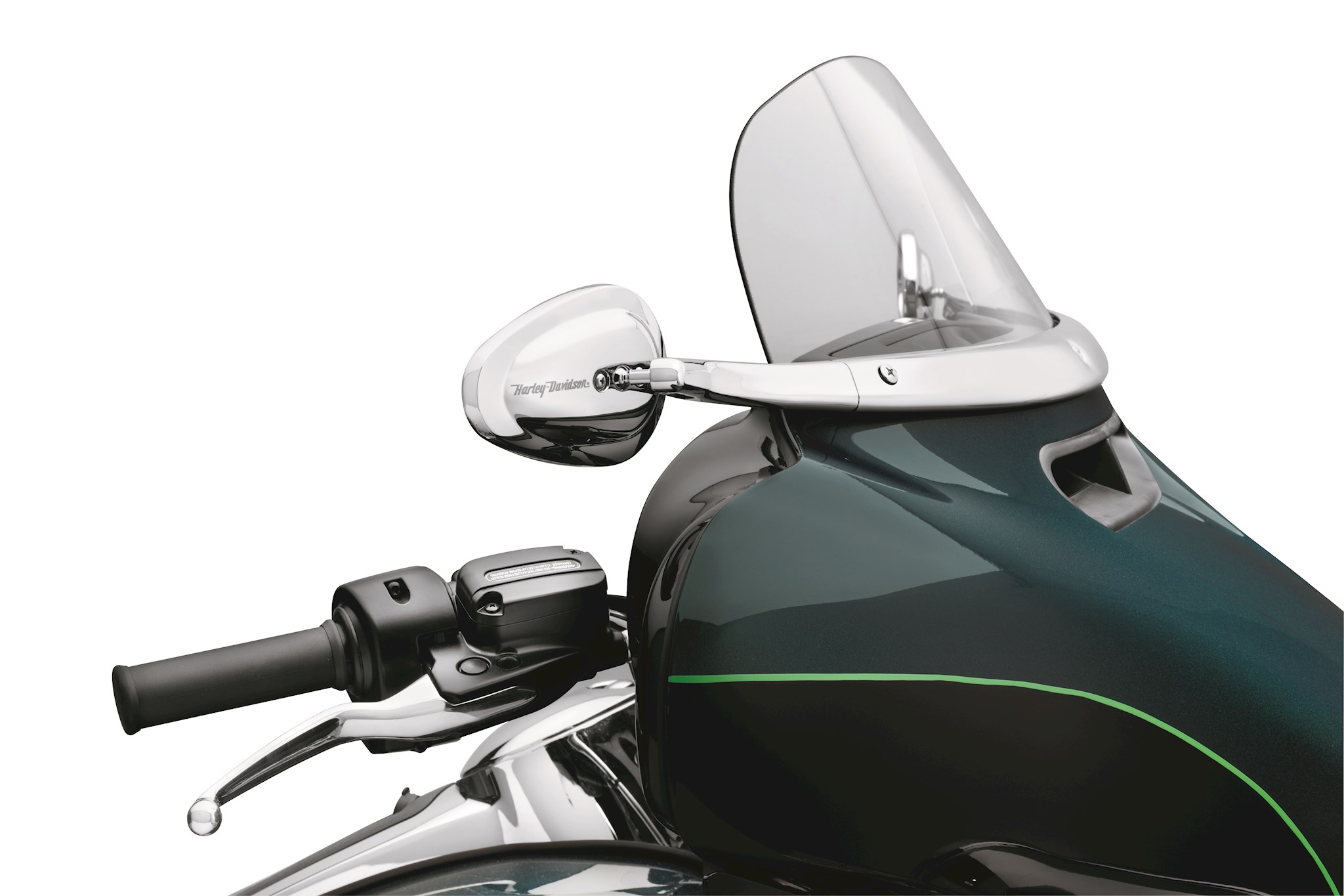 These Tapered Mirrors are a stylish addition to the Windshield Trim Mirror Mounting Kit P/N 57400254. The mirror provides a large reflective face for a great view to the rear, while the sculpted teardrop-shaped shell is styled to minimize the visual profile. Designed for easy installation and a wide range of adjustability, this kit includes left and right-hand mirror heads.