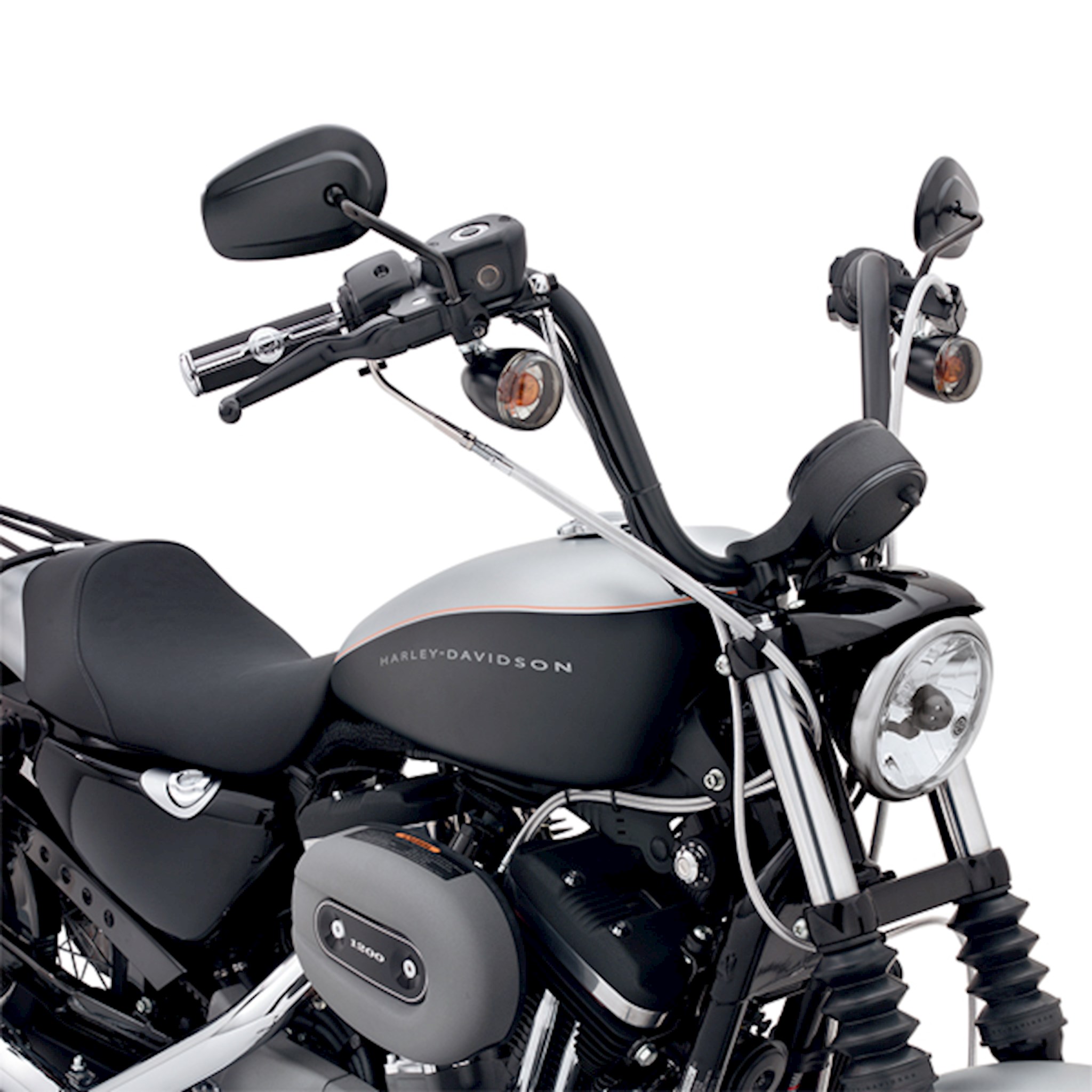Raise your fists to the wind. This 1.0" diameter Mini-Ape Handlebar features a conservative rise and bend for rider comfort and a chrome or satin black finish that complements the aggressive look of the Nightsterâ„¢ and Street Bob® models. Fits '07-later XL883L, XL883N, XL1200L, XL1200N, XL1200T, XL1200V and XL1200X models. Also fits '06-later FXDB and '96-'05 FXDWG models with Original Equipment handlebar P/N 58079-93. XL models require separate purchase of additional components.