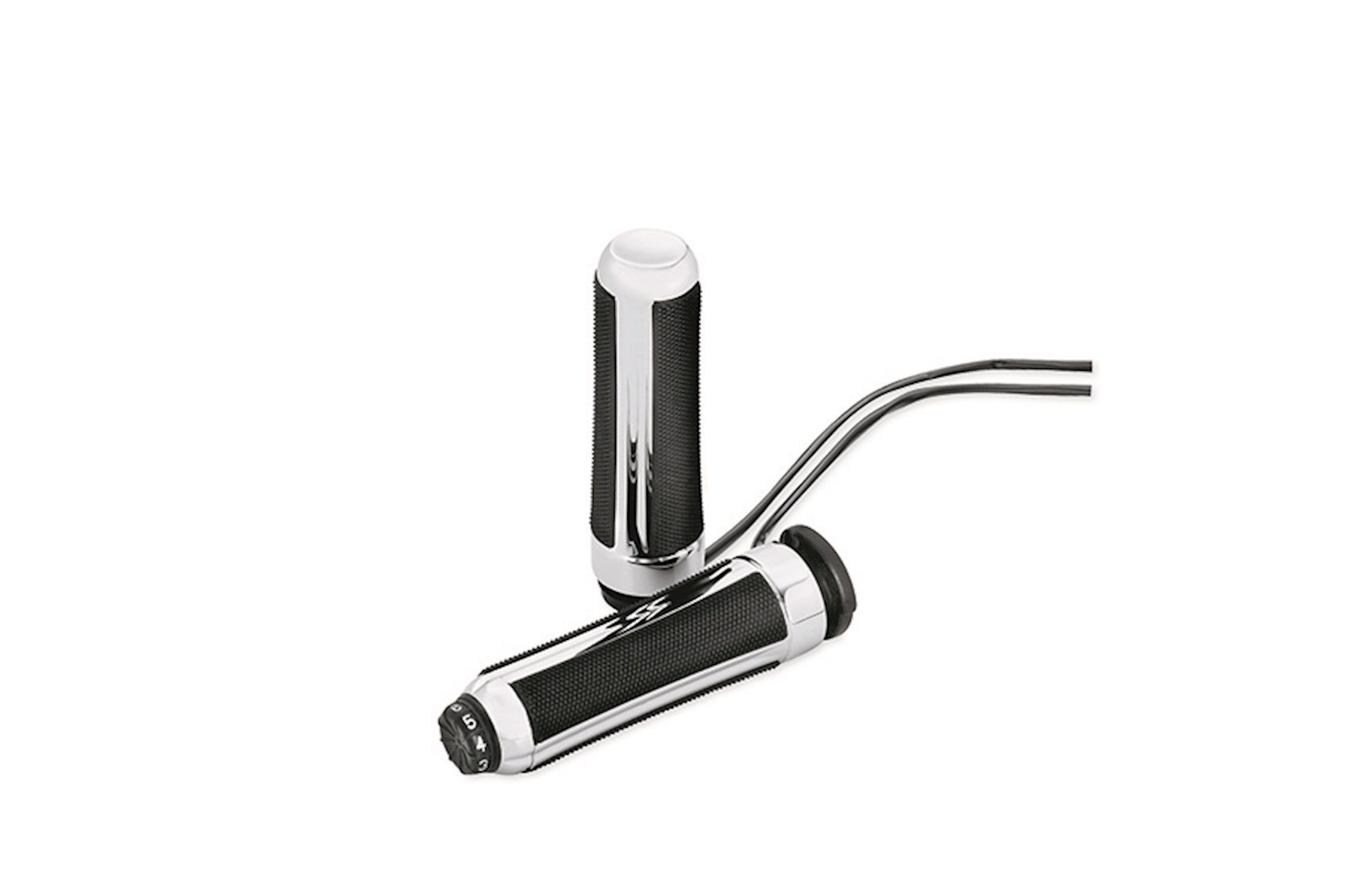 Wrap your fingers around the chrome ridge for a sweet tactile feel. These grips combine a traction-grip crosshatch rubber surface with a comfortable 1.6" diameter for excellent control in wet or dry weather. These grips have been thermally mapped to provide a more uniform heat and are designed to achieve a maximum operating temperature approximately 20° Fahrenheit warmer than previous accessory heated grips for added warmth during cold rides.