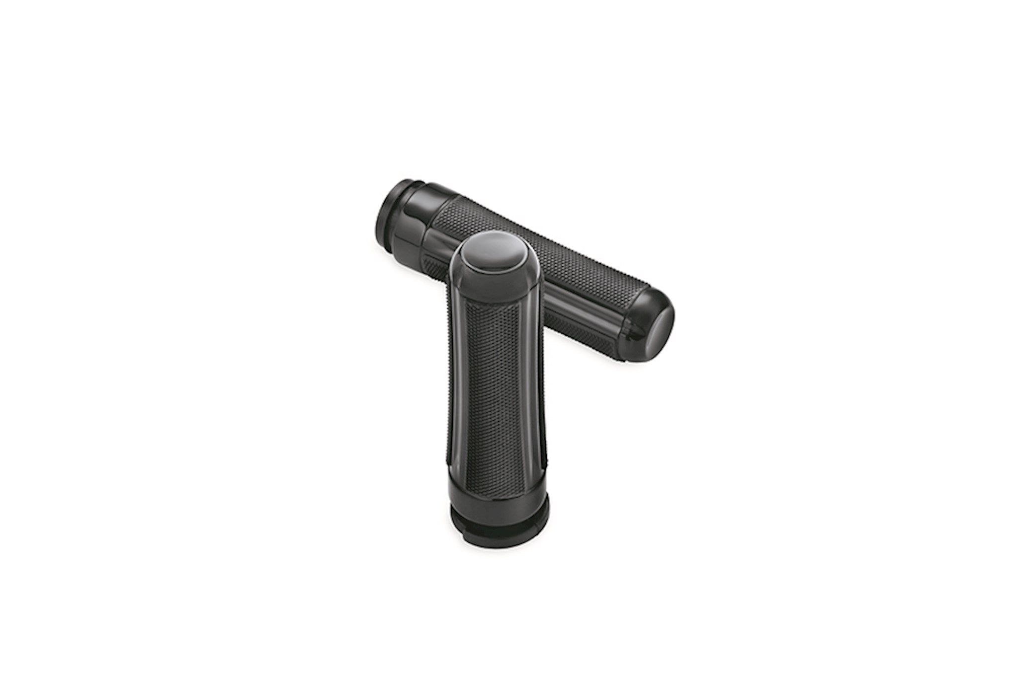 Airflow Collection – Gloss Black Defined by a sleek surround, the deep hockey-stick groove and the smooth rubber traction strips, this delta wing-inspired collection is the perfect match for your high-profile street machine. The rich black high-grip surfaces are divided by a deep channel that draws your eye from the leading to the trailing edge. Available in your choice of mirror chrome or gloss black finish. Airflow Hand Grips - Gloss Black Wrap your fingers around the ridge for a sweet tactile feel. These grips combine a traction-grip crosshatch rubber surface with a comfortable 1.6" diameter for excellent control in wet or dry weather. The easy-to-install “glueless” design allows you to remove the grips for service without damage