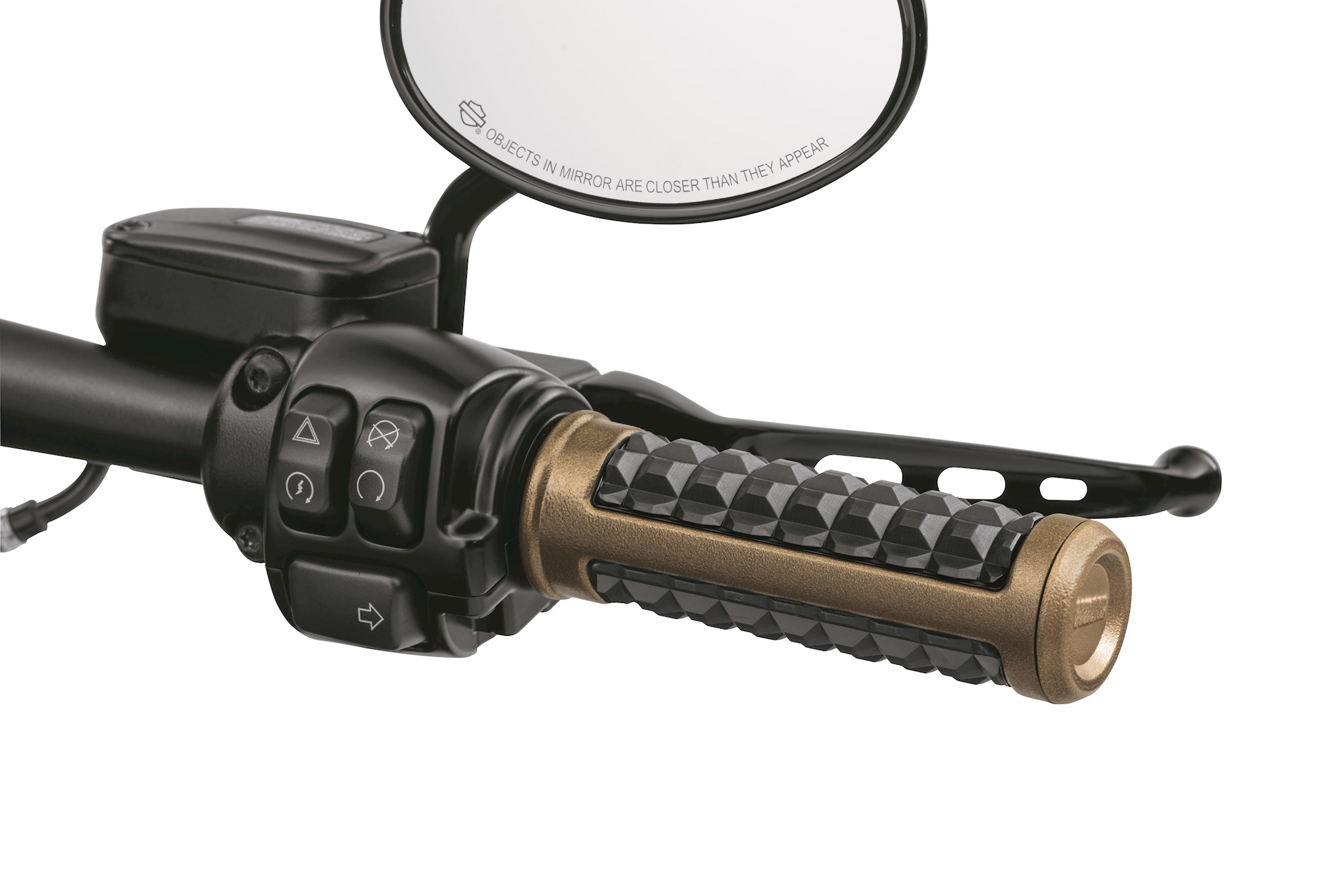 Express your bold, renegade attitude. The Dominion™ Collection Rider and Passenger Controls let you set your own styling direction. Crafted from aluminum, these controls feature a rugged machined surface with bronze finish and, some accessories accomodate interchangeable inserts in brushed aluminum, brushed black, bronze powder-coated or brushed orange anodized (sold separately) that allow you to create your own unique look.
