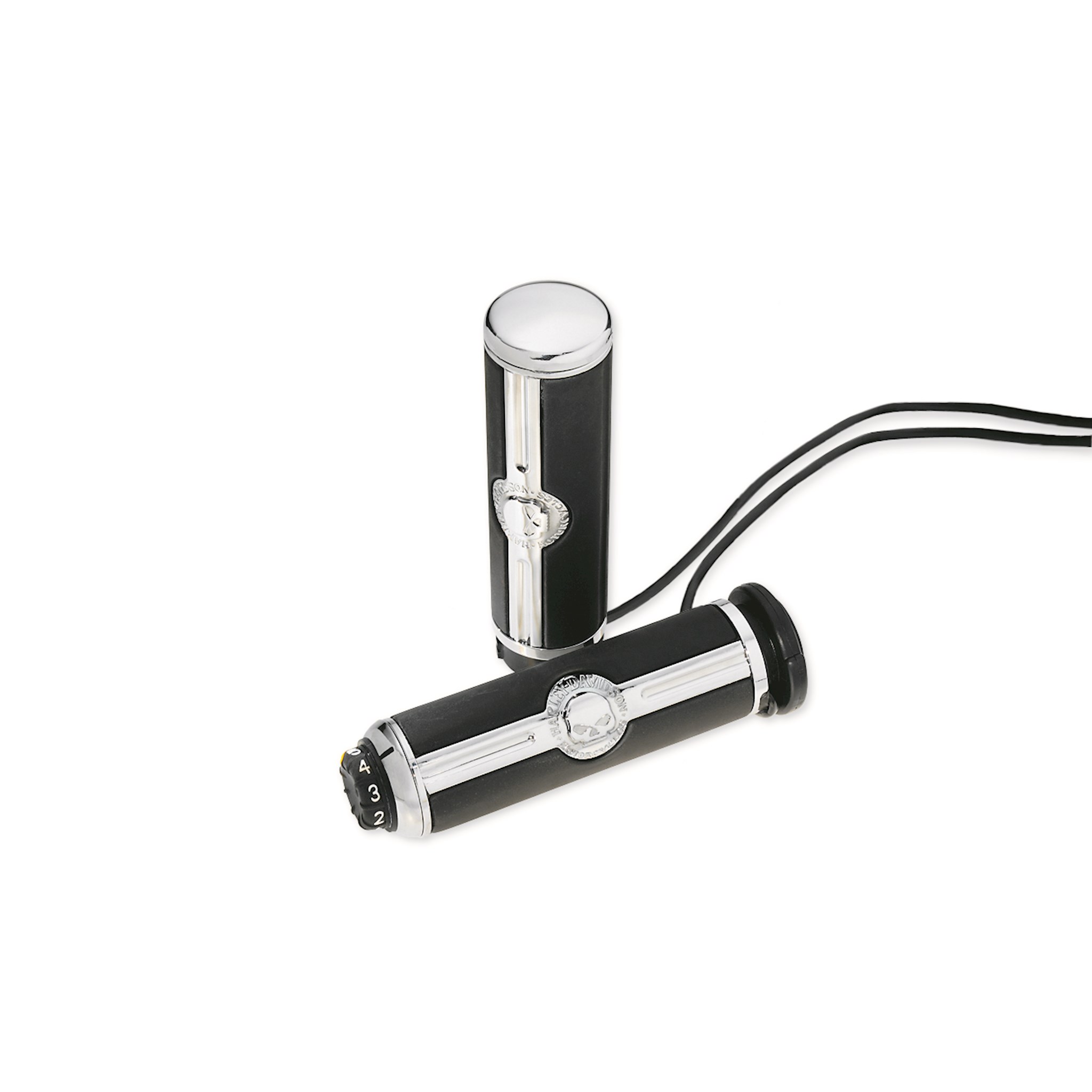 Keep comfortable on those cool morning or frigid night rides. Warm hands have a major impact on overall body comfort and sometimes gloves just aren't enough. These thermostatically controlled grips have variable heat settings and automatic temperature monitoring to adjust to changing ambient temperatures. With both hands in place, the grips remain at a constant temperature regardless of changes in outside temperatures. The self-contained control circuit and control knob means you have no additional switches or controller boxes to mount and the grips are switched on/off with the ignition to avoid draining your battery. The "glueless" grip design allows grip removal if you change handlebars or motorcycles. Fits '08-later Touring and Trike models (except CVO™). '14-later Touring models require separate purchase of Electrical Connection Kit P/N 69200722. Not for use with internally wired handlebars.