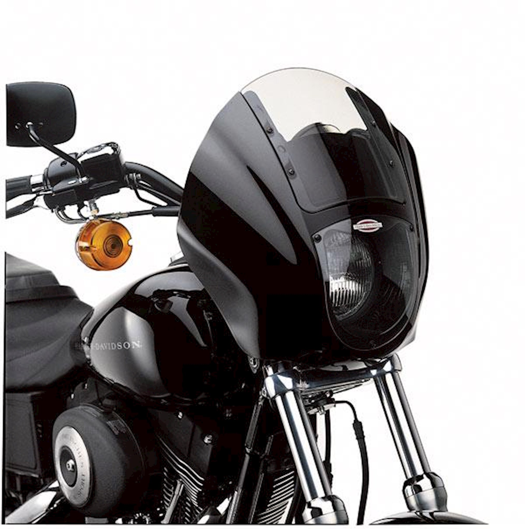 Sleek, racy styling and sweeping lines are the make-up of this innovative fairing. Its quarter-sized, detachable design gives your bike a whole new, sporty look that can be changed in an instant. Available in Primed or Vivid Black. Requires the installation of Detachable Docking Hardware Kit P/N 58164-96A. Fits '88-later XL (except XL Custom, XL1200X, XL1200N, XL1200T, XL883N and '11-later XL883L), FXR and '95-'05 Dyna® models (except FXLR, FXDXT and FXDWG).