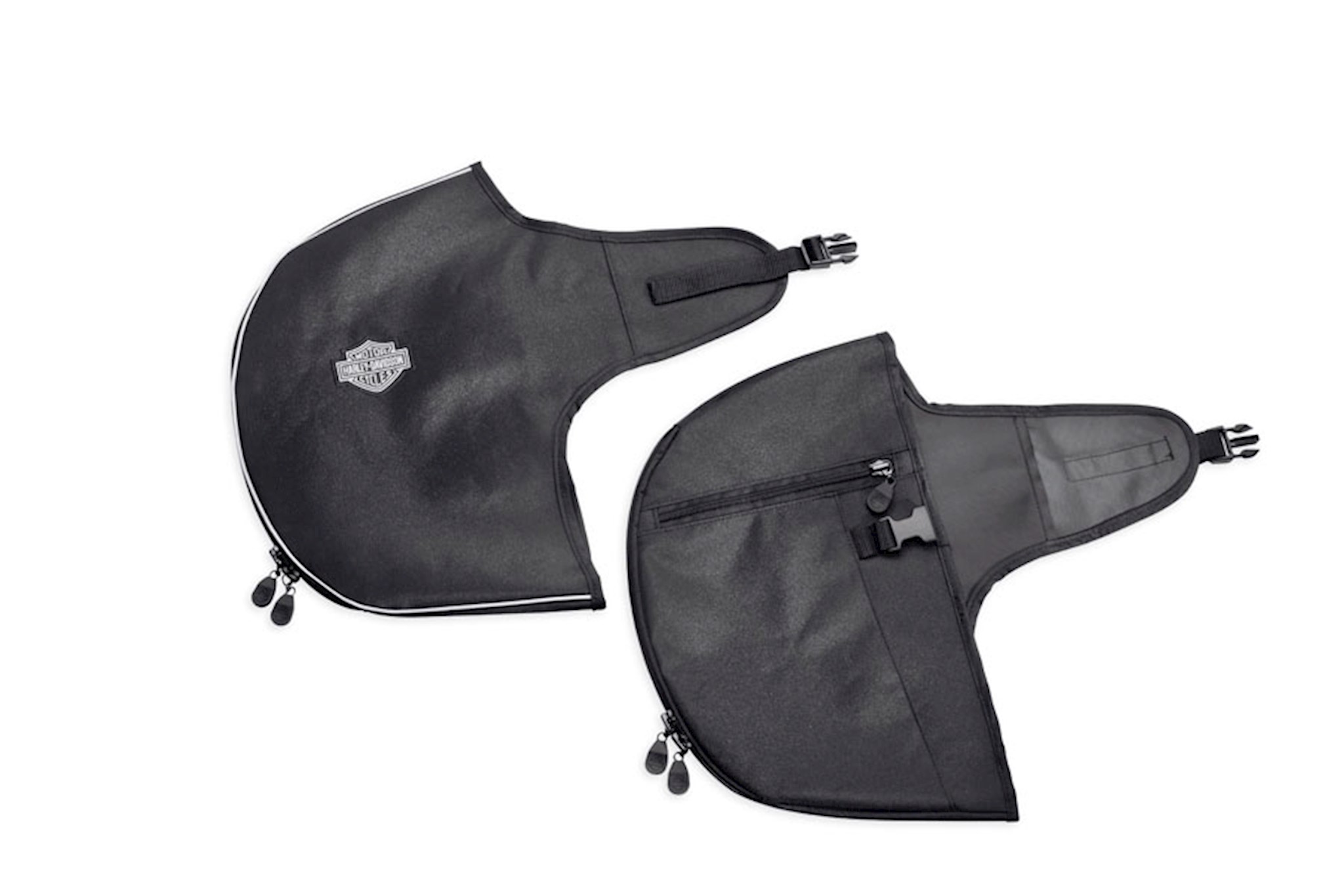 Extend your riding season. Full coverage Soft Lowers provide wind and mud protection for the rider's legs and boots and minimize cold updrafts as the weather changes. Covers are custom shaped to hug the engine guard to minimize flapping and they simply clip in place for speedy installation as the weather changes. Two-way zippered outer edge accommodates guard-mounted highway pegs in almost any position. Reflective piping provides added visibility and convenient zippered pockets provide additional storage for maps or other small items.