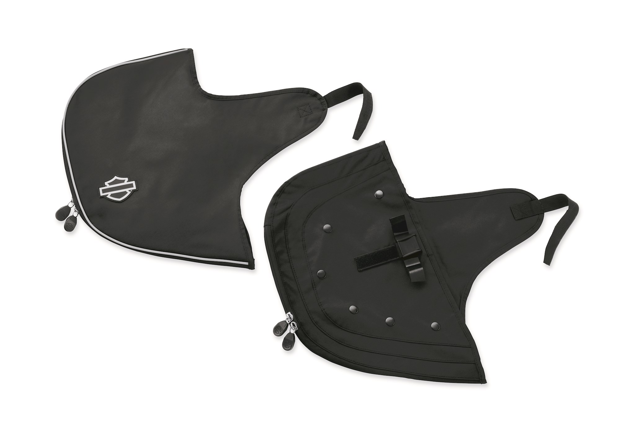 Extend your riding season. Full coverage Soft Lowers provide wind and mud protection for the rider’s legs and boots and minimize cold updrafts as the weather changes. Covers are custom shaped to hug the engine guard to minimize flapping and they simply clip in place for speedy installation as the weather changes. Two-way zippered outer edge accommodates guard mounted highway pegs in almost any position. Reflective piping provides added visibility and the rigid inner panel provides ample clearance around the foot controls.