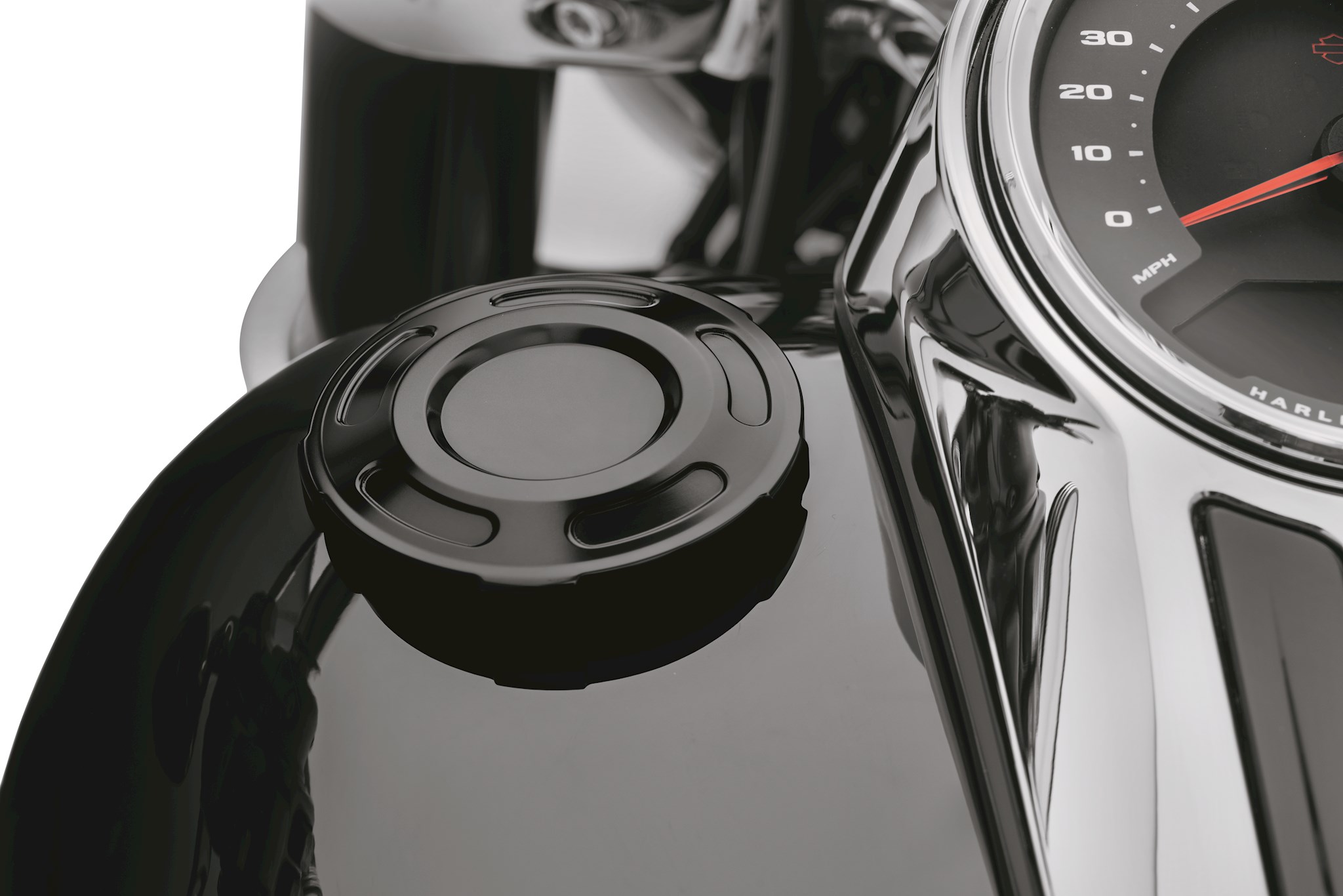 Styled to match the custom right-side fuel cap, this left-side decorative tank cap proudly completes your custom look. The easy-to-install cap replaces the Original Equipment trim, and provides the rider with a symmetrical view over the tank.