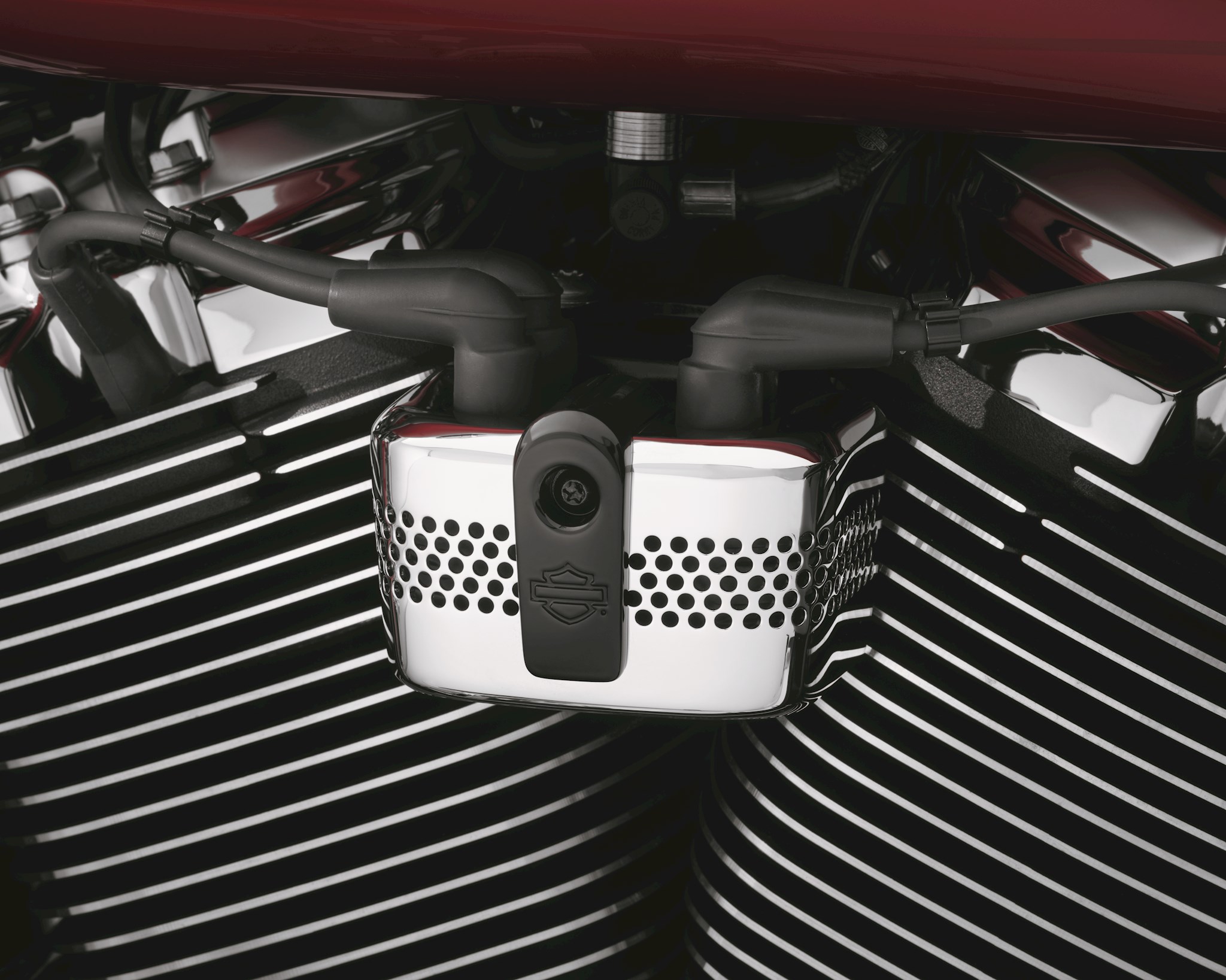 Create a custom look in minutes. Dressed in classic chrome or rich, gloss black, these coil covers make it easy for you to complete your chromed- or blacked-out look and feature a Bar & Shield emboss in contrasting gloss black on the chrome cover or, chrome on the gloss black cover, creating a unique look. To install, simply remove the OE screw, add the cover and the included screw, and one of the most visible parts of your bike is now customized. Includes all necessary hardware.